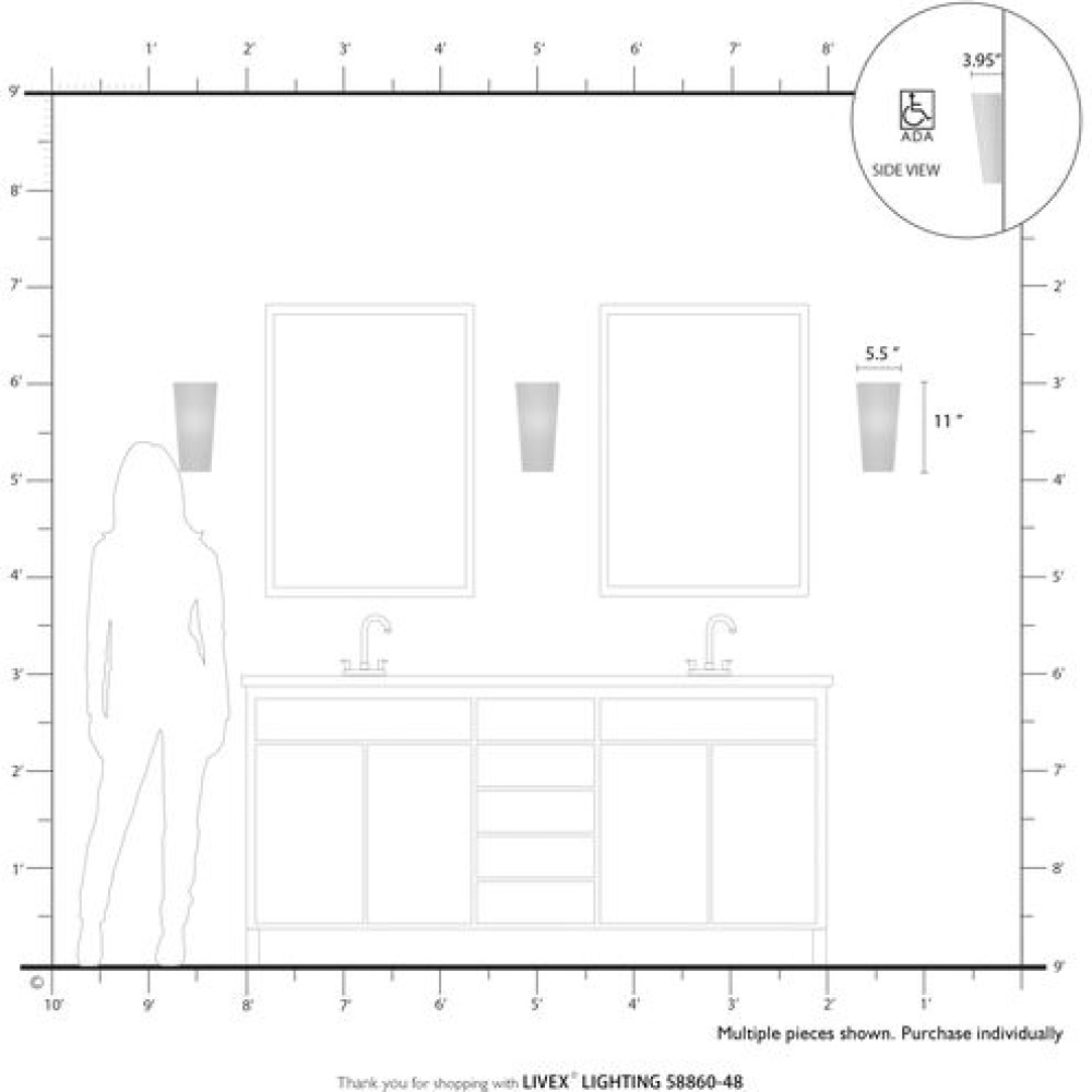 Livex Lighting 58860-48 - 1 Light Antique Gold Leaf ADA Sconce
