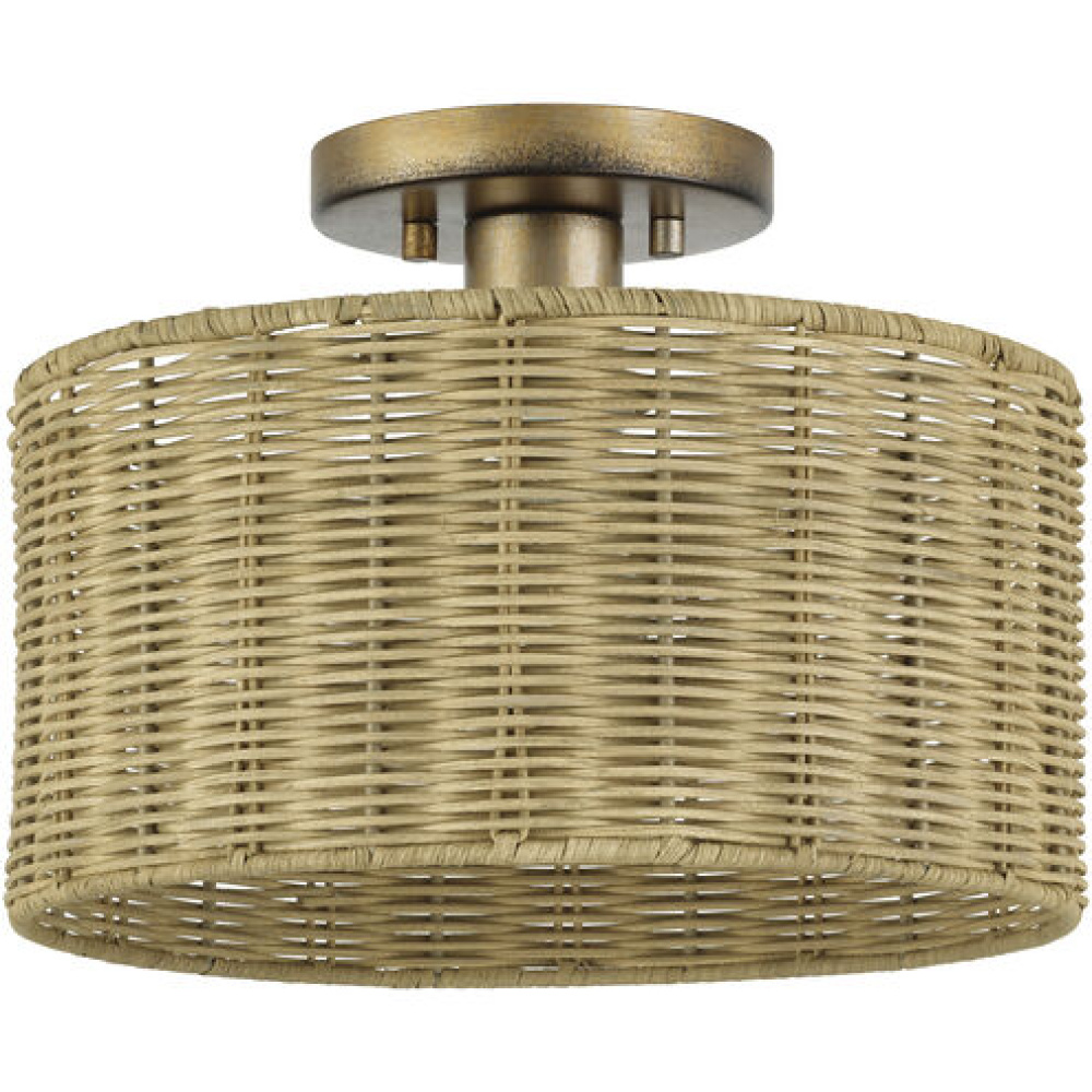 1 Light Antique Gold Leaf Medium Semi-Flush
