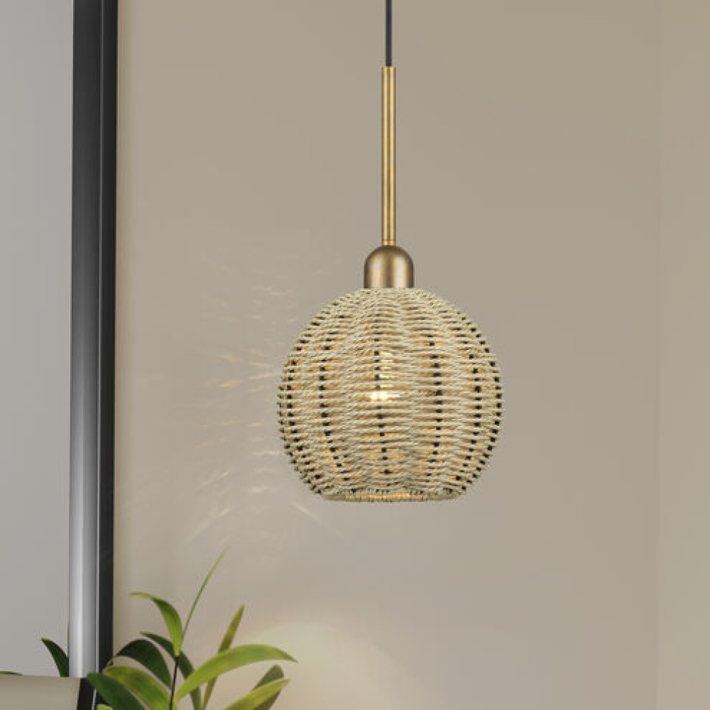Whatever the season outside, there’s always a laidback beach house atmosphere indoors – with the sunny, transitional Summervine lighting collection. This natural-feeling, versatile ceiling and wall light design features slender, curved metal frames (in attractive metallic finishes) and luminous globe- and ellipsoid-shaped shades – handwoven with the remarkably durable and water-resistant paper rope material, finished in rich French beige.