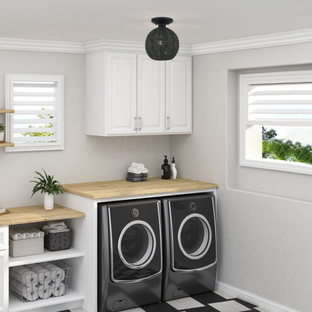 Surrender to one of life’s simplest yet most essential pleasures – soft lighting – with the ambient transitional Deluna lighting collection. This versatile, rustic-inspired design features minimalist metal frames and elegant mandarin-shaped – handwoven with the remarkably durable and water-resistant paper rope material, finished in midnight black. Delivers organic-feeling, gently diffused illumination with atmospheric shadowing.