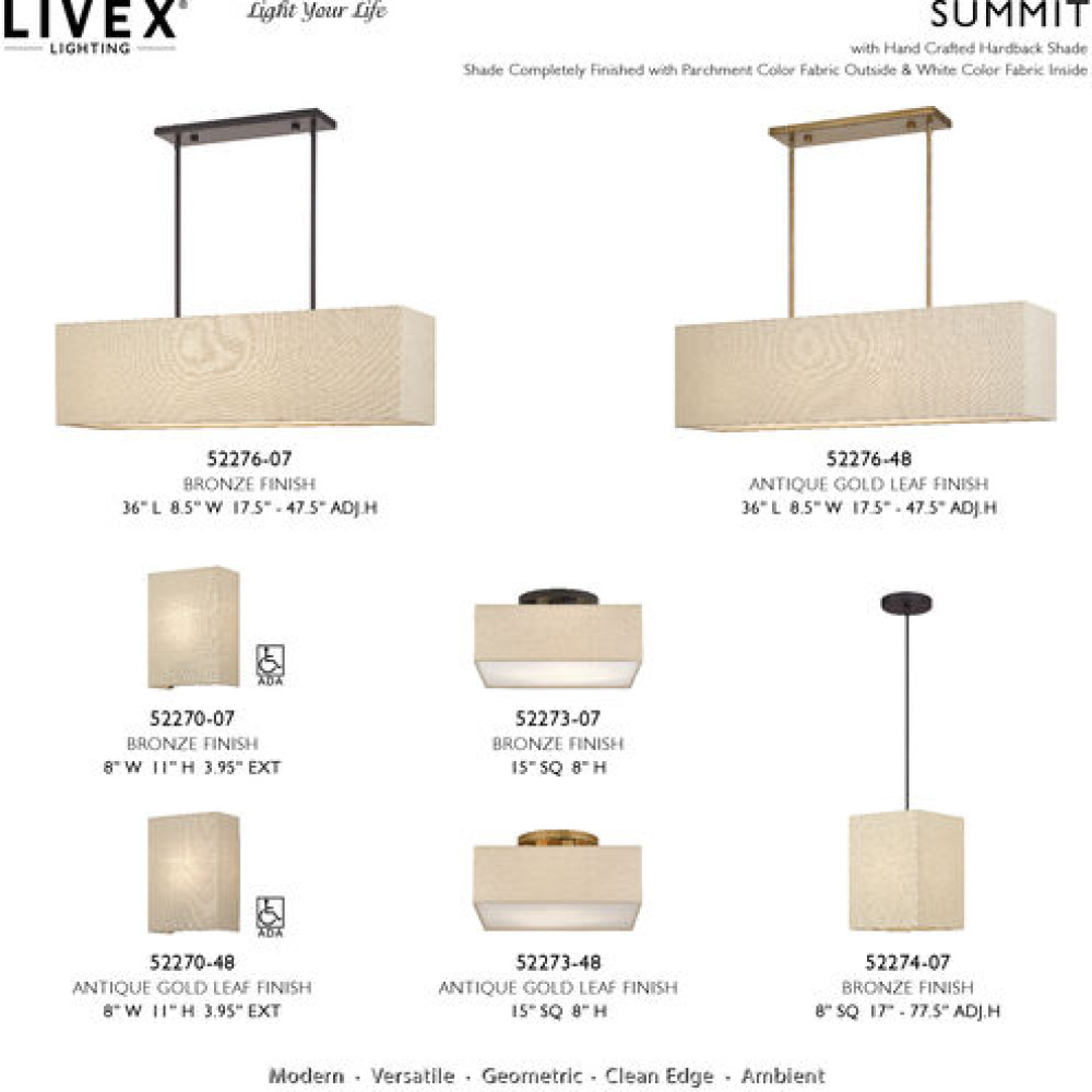 For those who appreciate minimalist design with maximum impact: the transitional Summit lighting collection delivers refined beauty and timeless functionality. The Summit luminaire consists of a rectangular and square shaped handcrafted hardback shade. When lit, it appears as a glowing monolith, bathing the surrounding space in peaceful, powerful illumination.