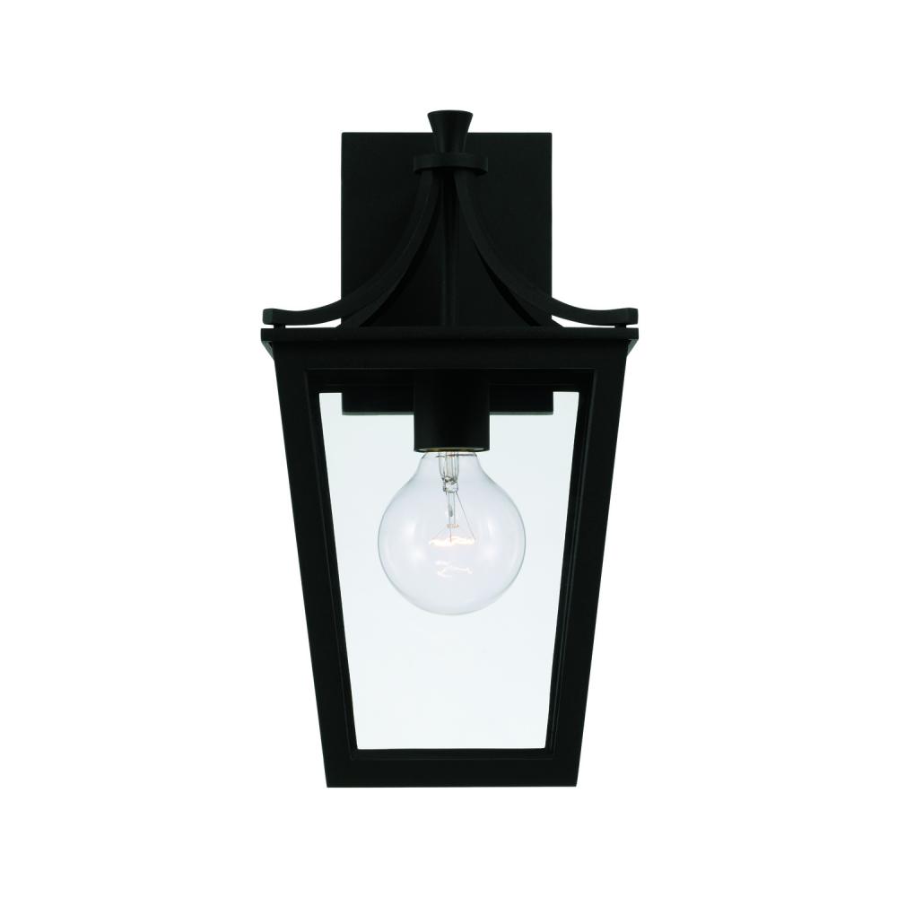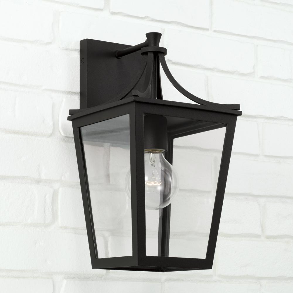 7.5"W x 14.25"H 1-Light Outdoor Wall Lantern in Black with Clear Glass