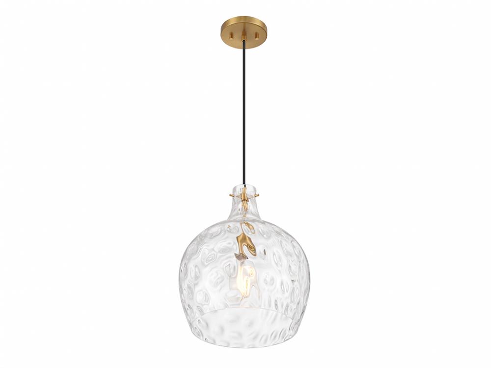 Amplify the look of any space with this beautiful 1-light pendant! It features a shade of highly textured hammered glass that takes center stage, held on a sleek black hanging cord and accentuated by hardware in a Natural Brass finish. This pendant is 12.75" in width and has an adjustable height ranging from 15" to 135". Uses 1 standard size bulb of up to 60 watts. Bulb not included.