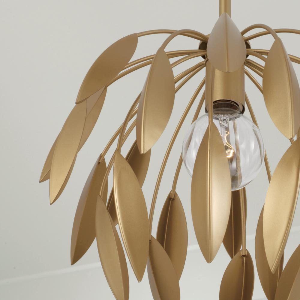 Whether hung as a pendant or semi-flush, the Margeaux Dual Mount brings the glamour. Layers of cascading leaves create decadent dimension, while the Buffed Gold finish evokes a subtle shimmer from every angle.