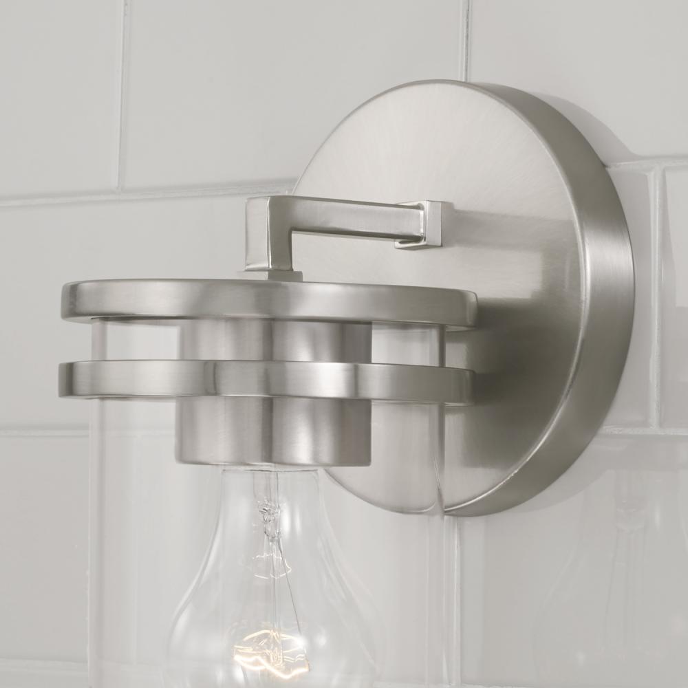 5"W x 9.75"H 1-Light Sconce in Brushed Nickel with Clear Glass