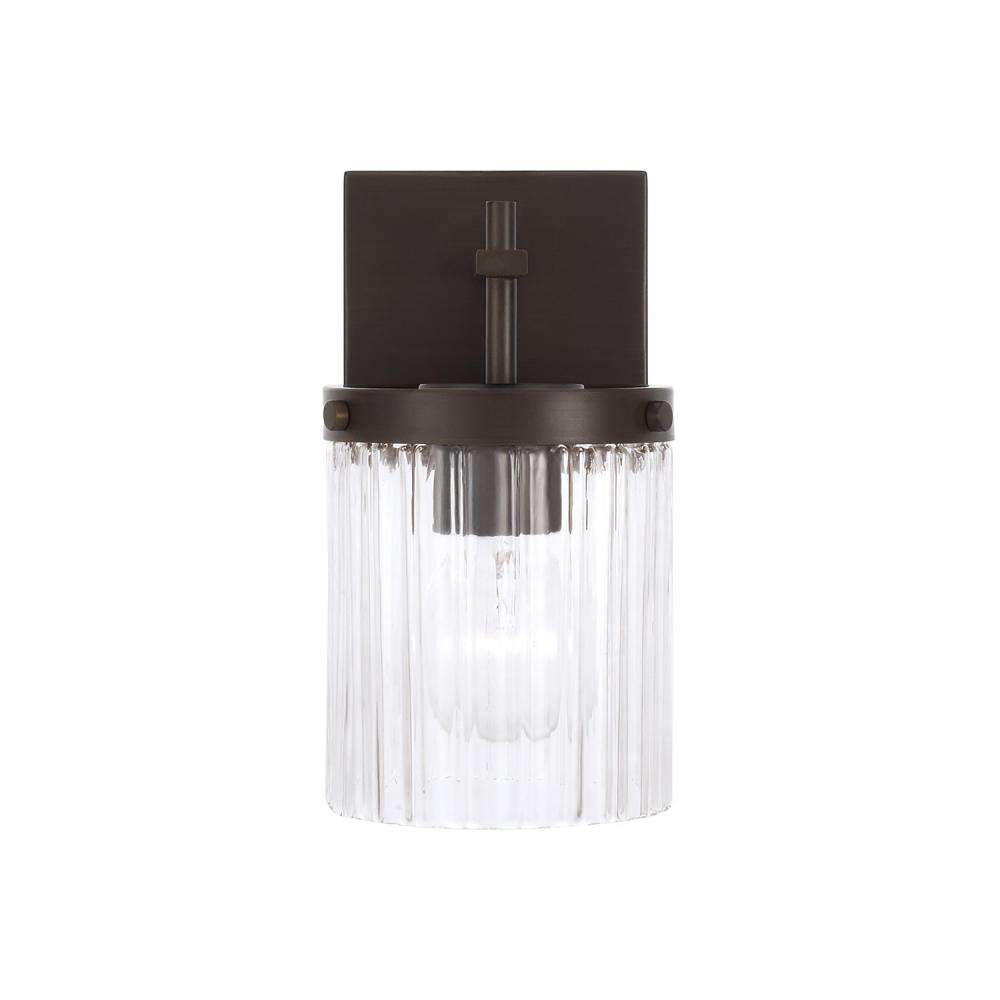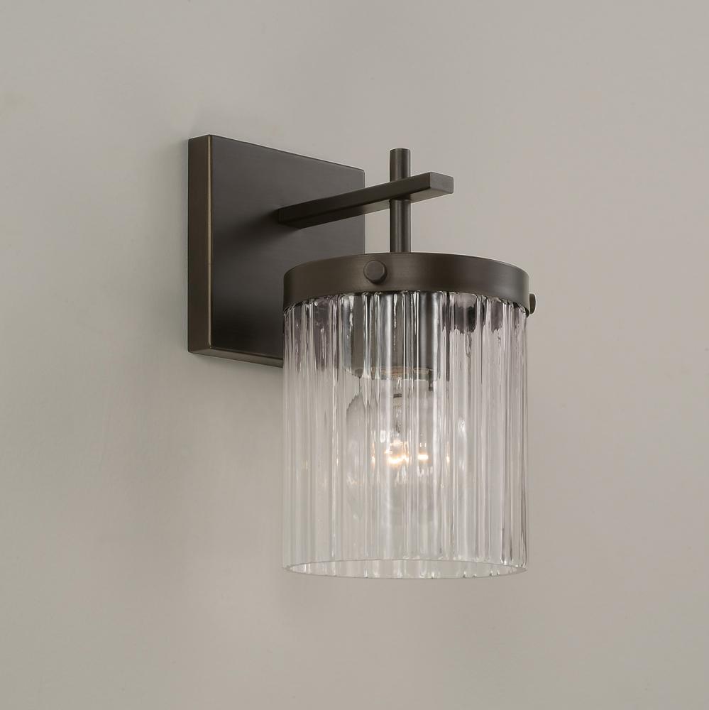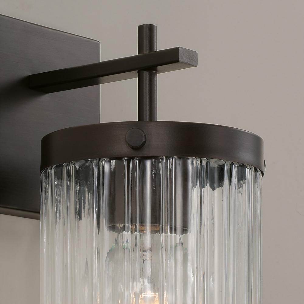 Invite stunning illumination to any space with the Vaughn Sconce. Held by sleek, intersecting arms, the Beveled Fluted glass creates captivating texture against the cylindrical silhouette, while the Oil Rubbed Bronze finish offers a refined, timeless aesthetic.