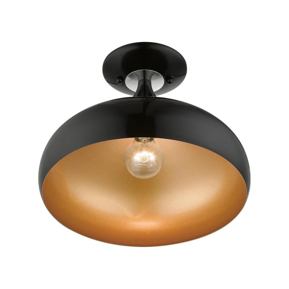 1 Light Shiny Black Semi-Flush Mount