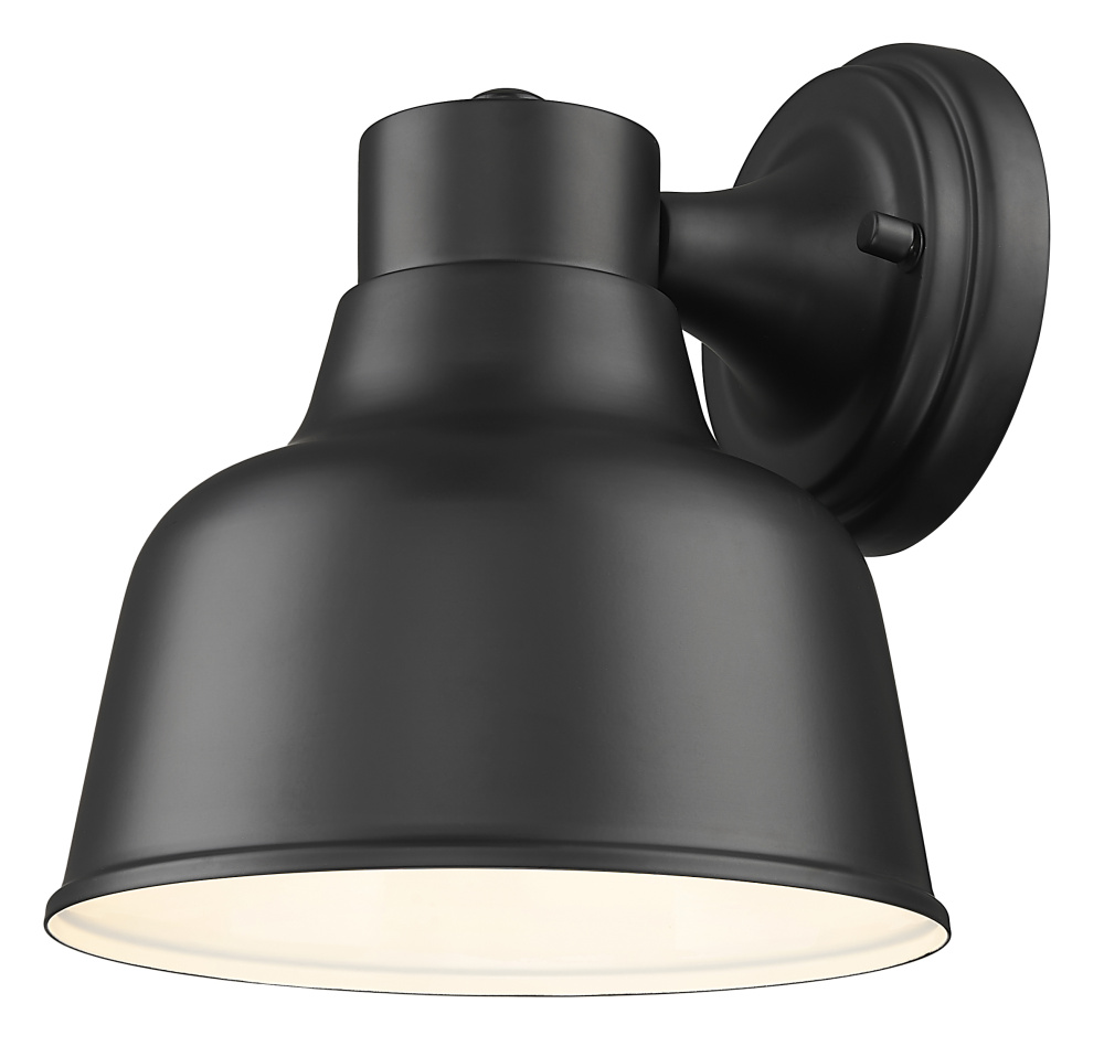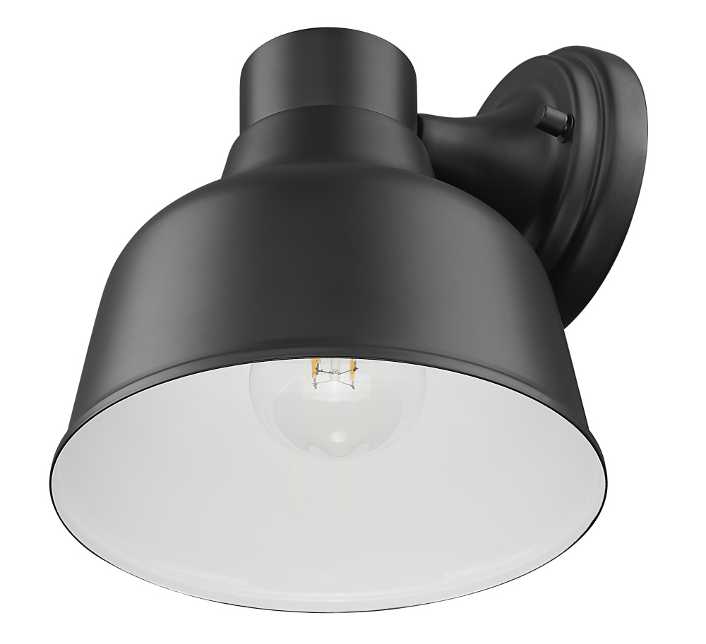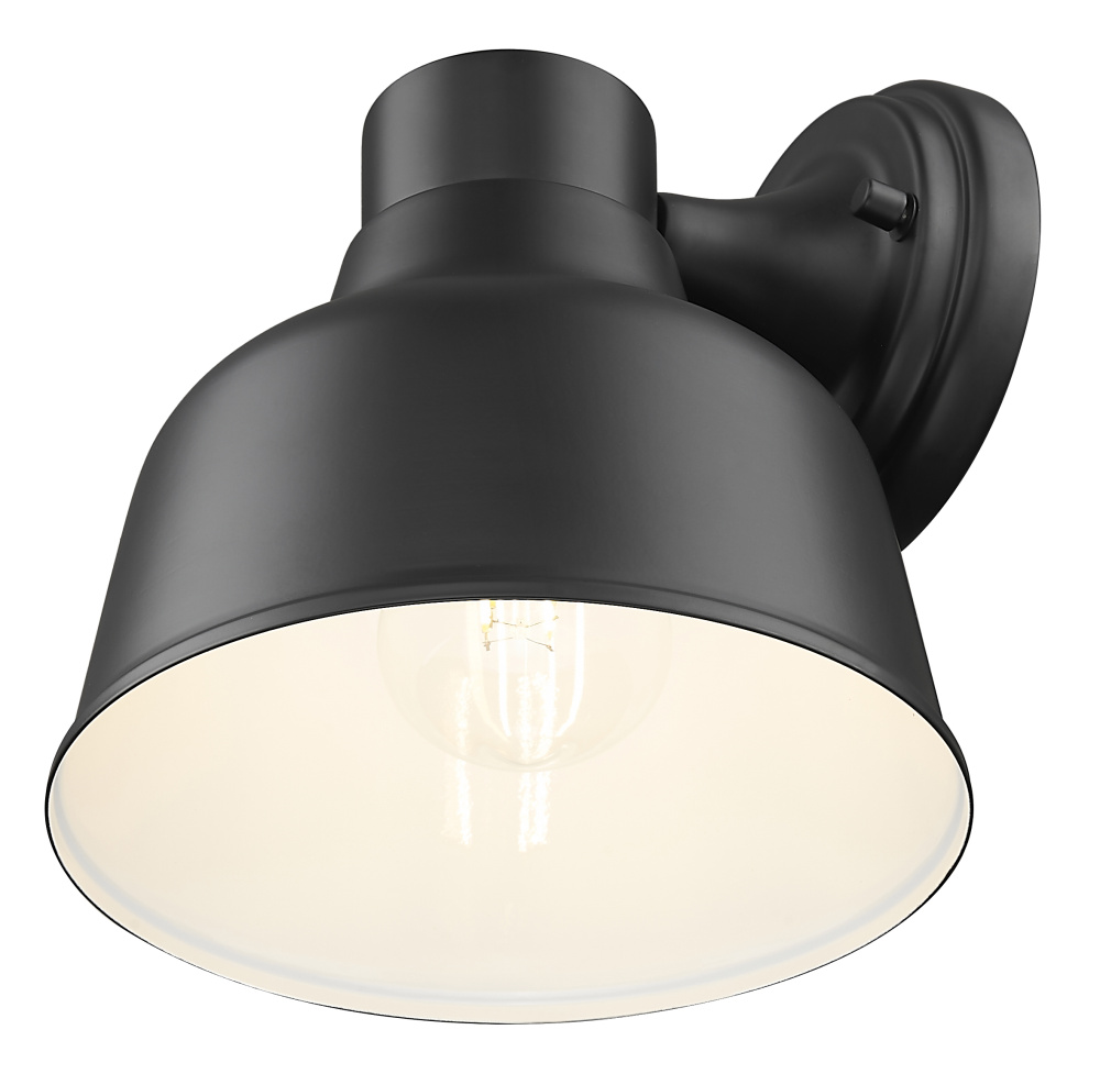 From Acclaim Lighting, this outdoor wall light fixture offers a stylized farmhouse look for your home. It comes in a black finish steel frame, with clean lines and a dome shaped shade, that form an eye-catching silhouette. Light nicely bounces off the inner painted white finish.