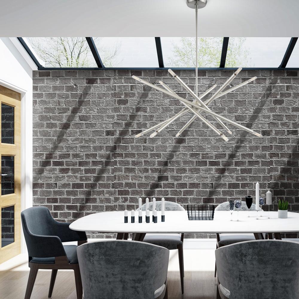 10 Light Scandinavian Gray Large Linear Chandelier with Brushed Nickel Finish Accents