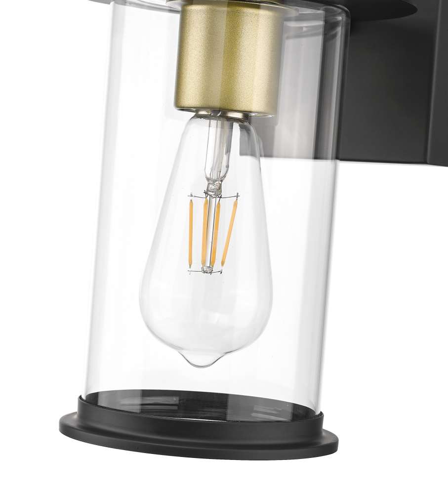 From Acclaim Lighting, this outdoor wall light fixture offers a stylized traditional look for your home. It comes in a black finish steel frame and brass accent, with clean lines and a curved top, that form an eye-catching silhouette. Clear glass allows for optimal illuminatuion.