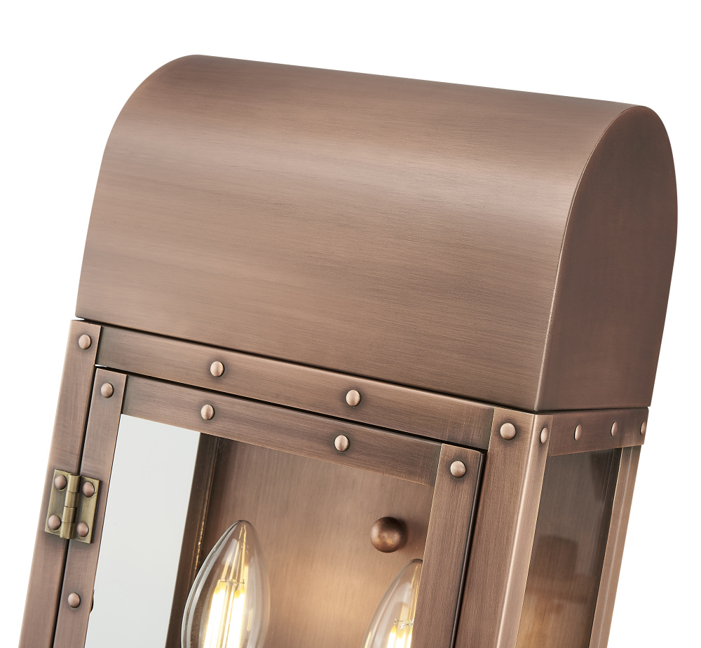 From the Spencer collection by Acclaim Lighting, this outdoor wall light fixture offers a stylized traditional look for your home. It comes in a copper finish, with brass accents, with clean lines and an arched top that form an eye-catching silhouette. The real copper is coated and will not rust or tarnish. Ideal for all the outdoor elements.