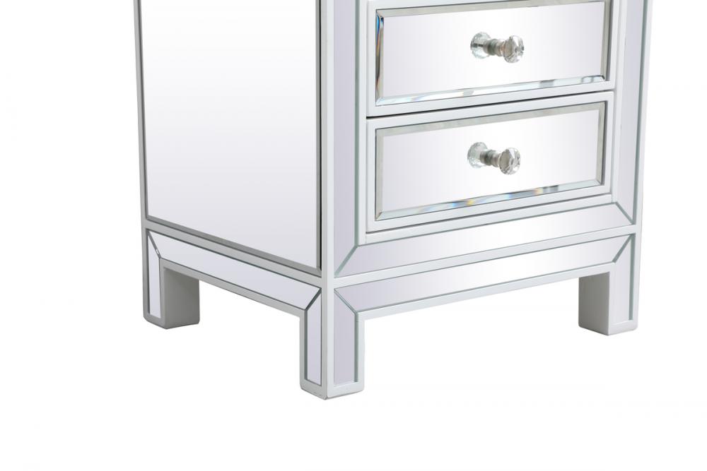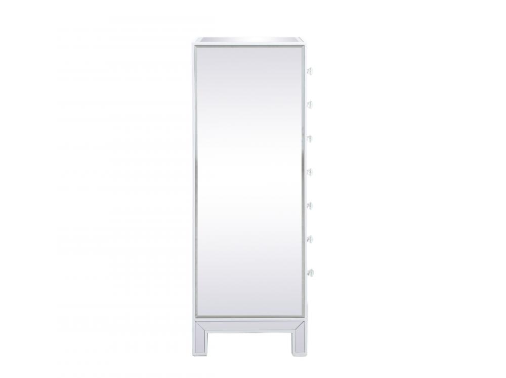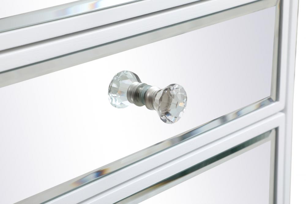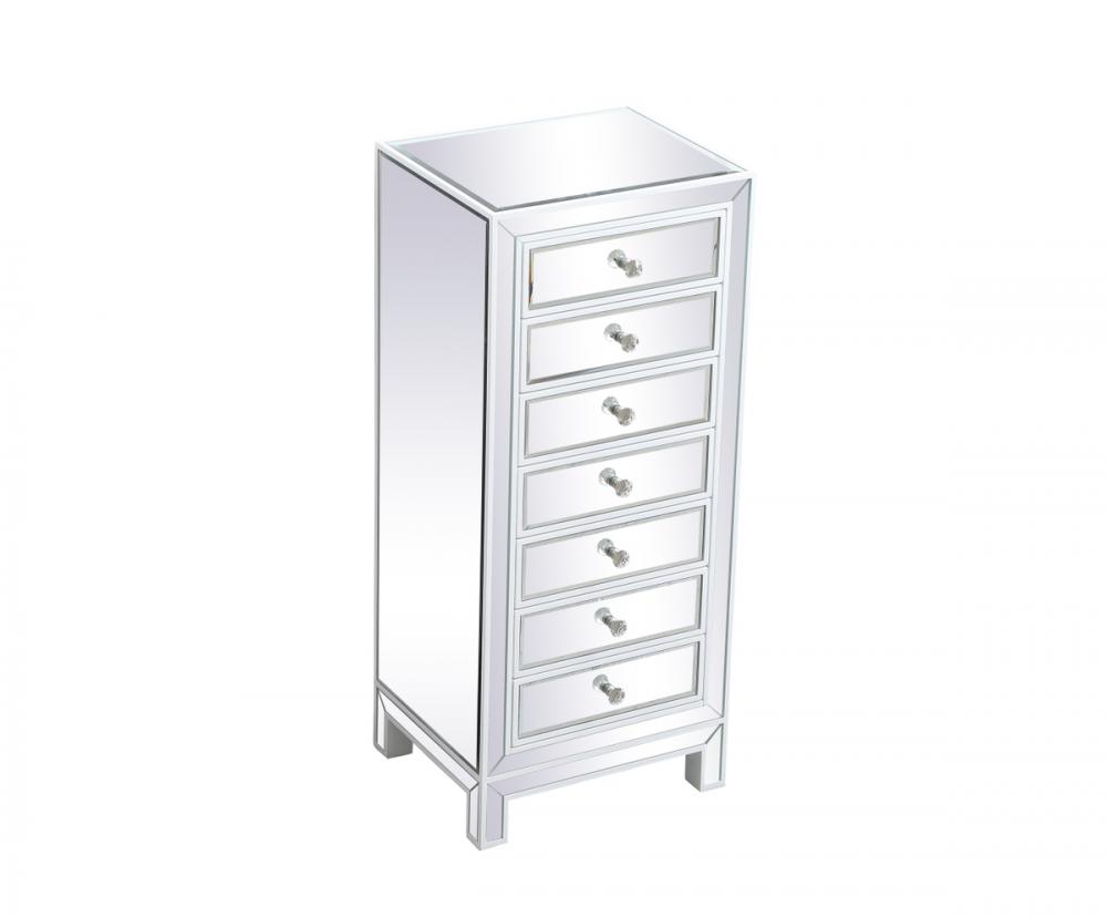 Enhance your bedroom or walk in closet with this fabulous and sophisticated lingerie chest! You can also store your intricate belongings in this petite 7 drawer chest. Dramatic and sophisticated, it has a hand painted finish border, beveled mirror panels on all surfaces, sparkling crystal drawer knobs, and mitered corners.