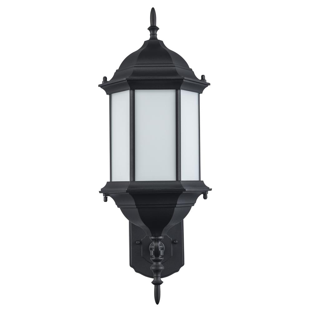 1LT-WALL LANTERN-LG-BK-WH FROS