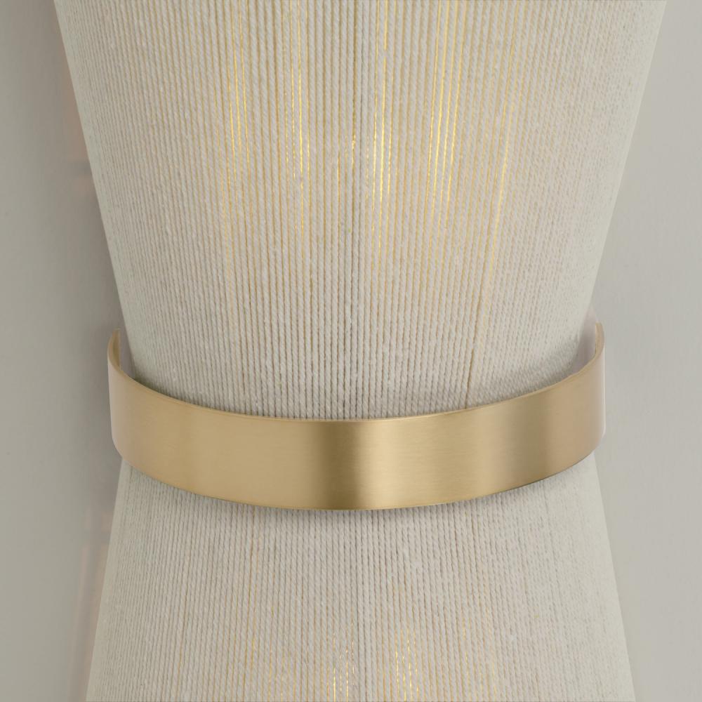 Invite contrast, drama, and glamour with the Cecilia Sconce. Sitting flush against the wall, the hourglass silhouette is hand-wrapped in Bleached Natural Rope creating artisan texture, while the slightly distressed Patinaed Brass adds dimension.