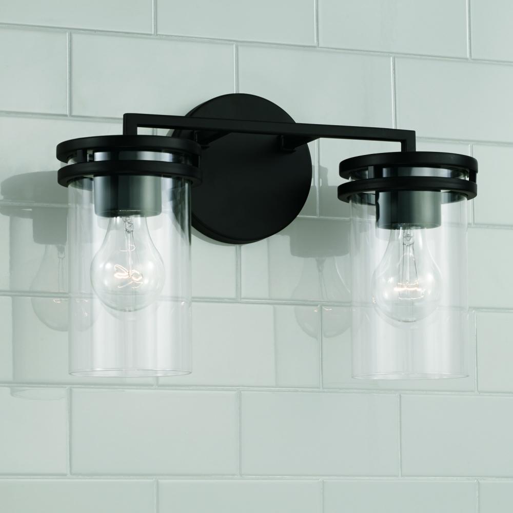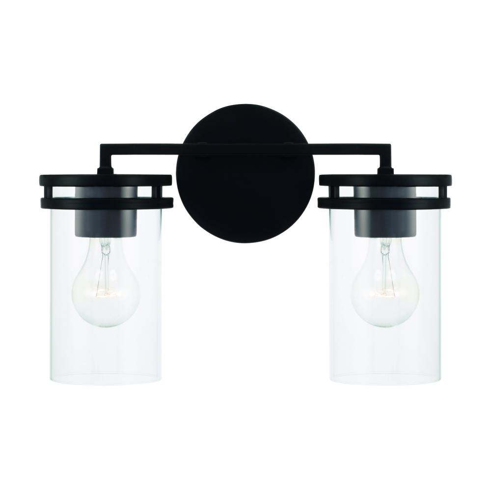 14.25"W x 9.75"H 2-Light Vanity in Matte Black with Clear Glass