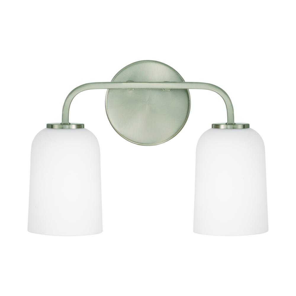 13.75"W x 9.75"H 2-Light Vanity in Brushed Nickel with Soft White Glass