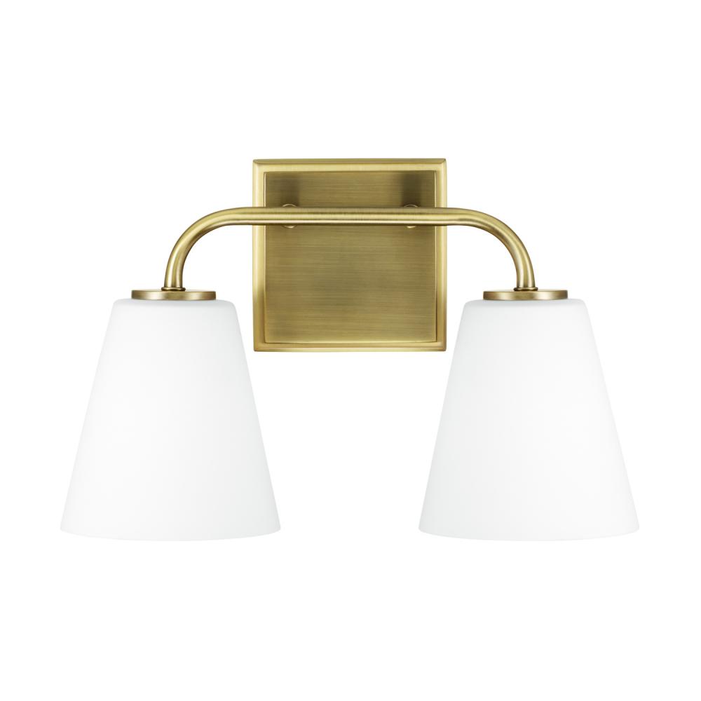 14.5"W x 9"H 2-Light Vanity in Aged Brass with Soft White Glass