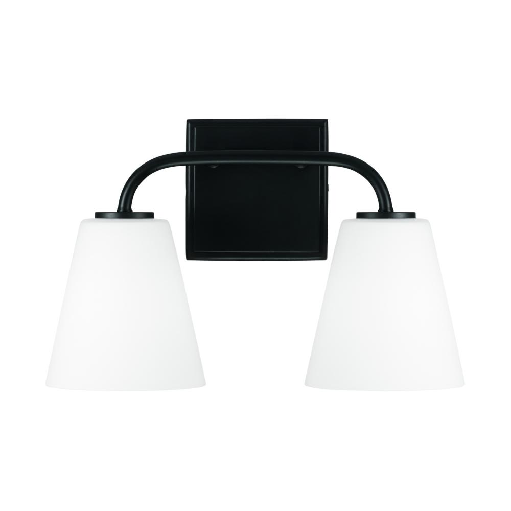 14.5"W x 9"H 2-Light Vanity in Matte Black with Soft White Glass