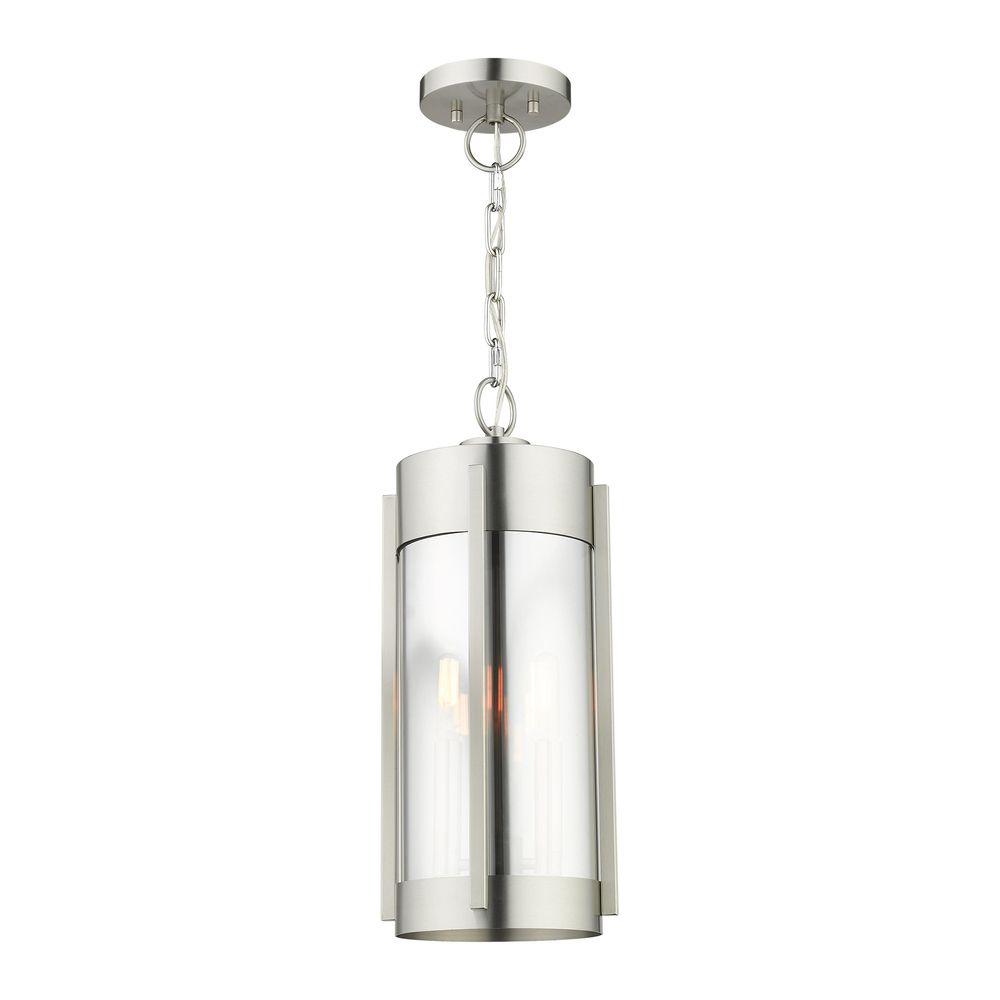 2 Lt Brushed Nickel Outdoor Pendant Lantern