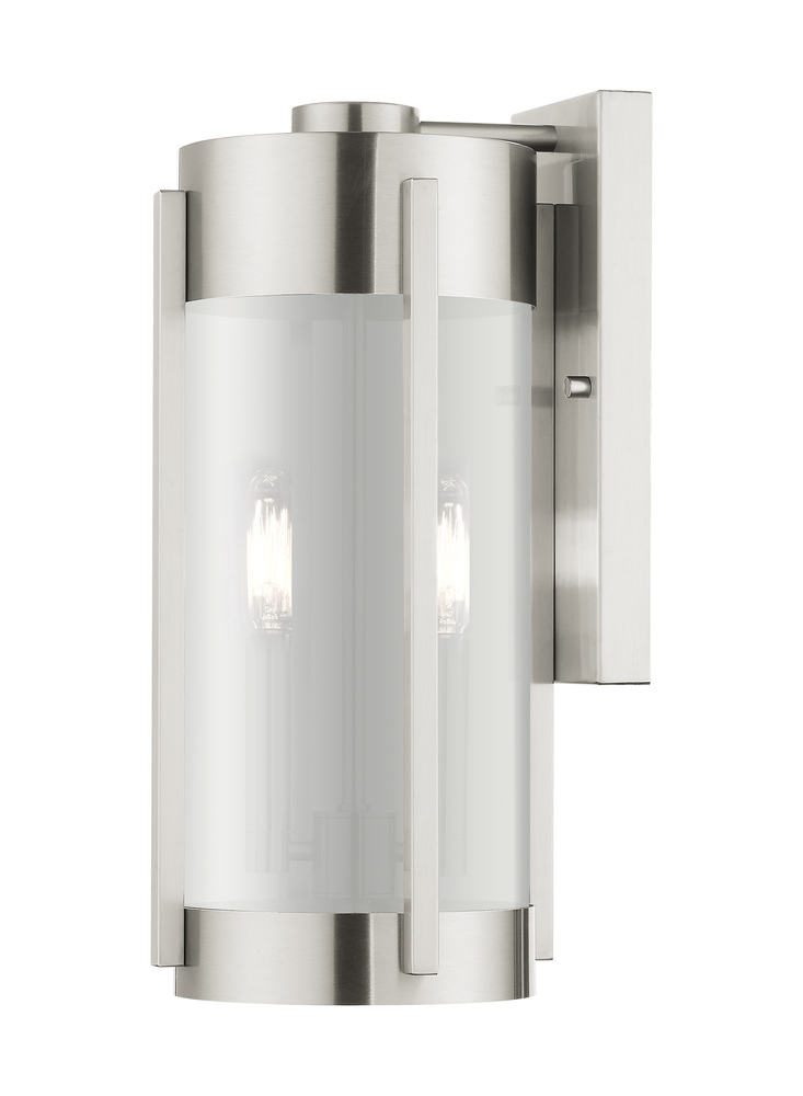 2 Lt Brushed Nickel Outdoor Wall Lantern
