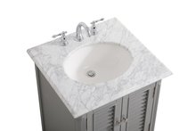 A small space doesn't mean you have to settle for less. The Rhodes collection compact vanity will add lovely sophistication and complement any small bathroom or powder room, while utilizing its charm and function to provide you with ample storage spaces. Metal round knobs gently adorn the shuttered cabinet door and drawer at the base, allowing for you to store away your bathroom essentials. The Carrara white marble countertop, porcelain undermount sink, dignified subtle engravings on the side edges, and rounded legs all come together to create contemporary beauty. Work with your space, and design a beautiful room, no matter the size.