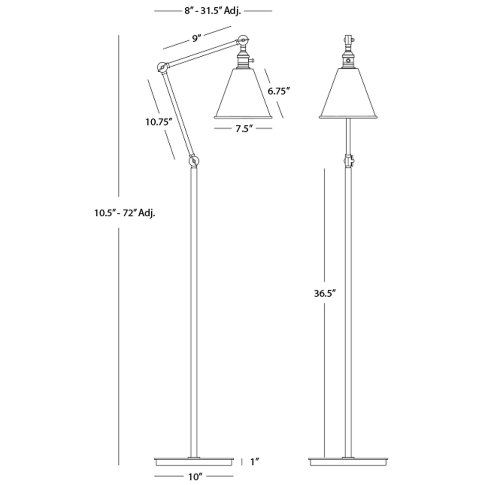 Alloy Task Floor Lamp in Warm Brass Finish and cased white glass shade has a sleek mechanical function in mind. Crisp geometry and polished metal make this piece the perfect choice to elevate your space.