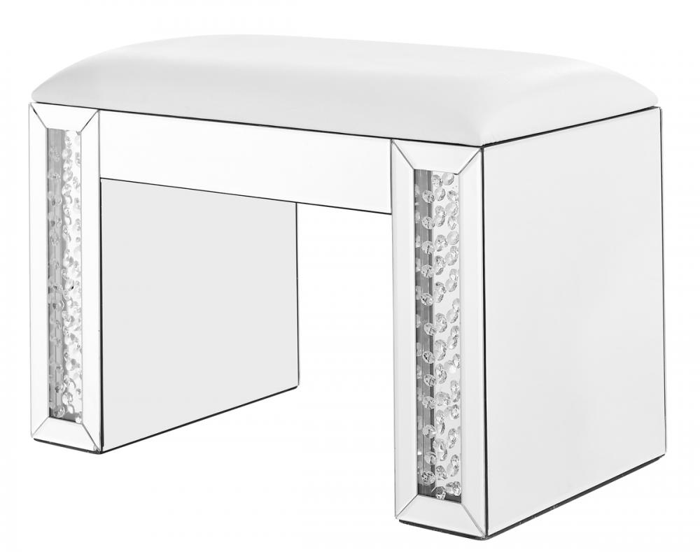 26 inch Crystal Vanity Leather stool in Clear Mirror Finish