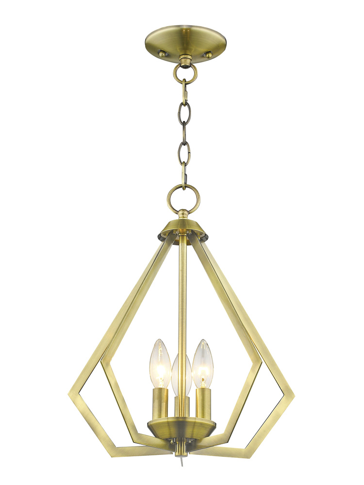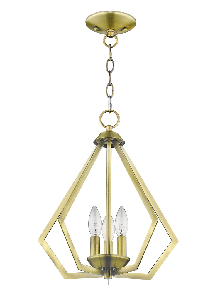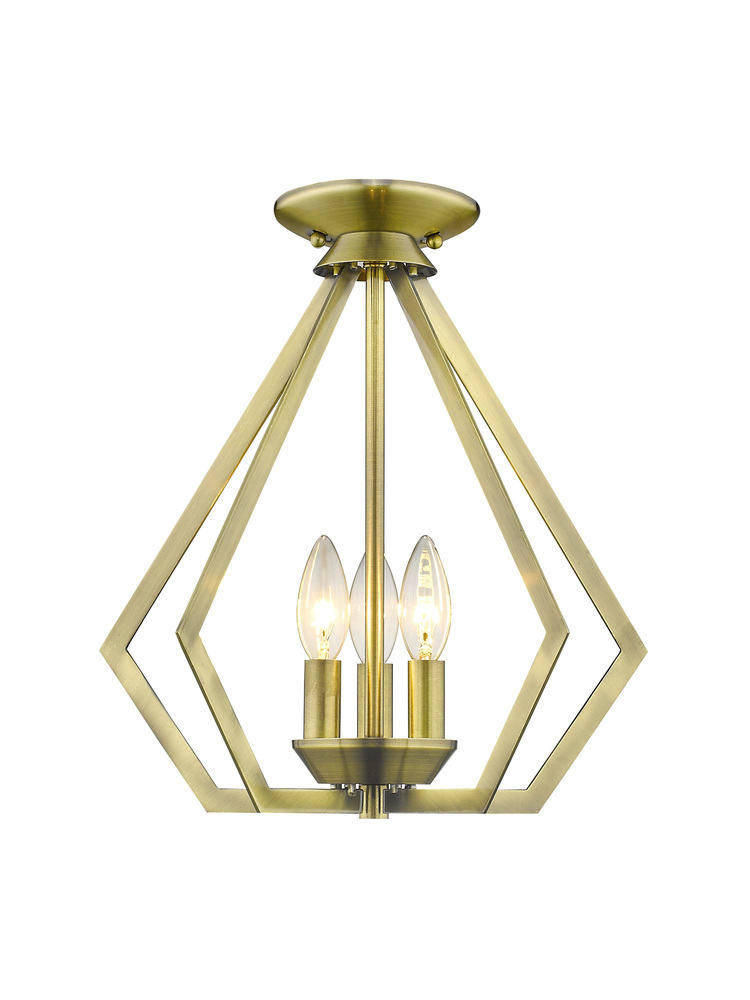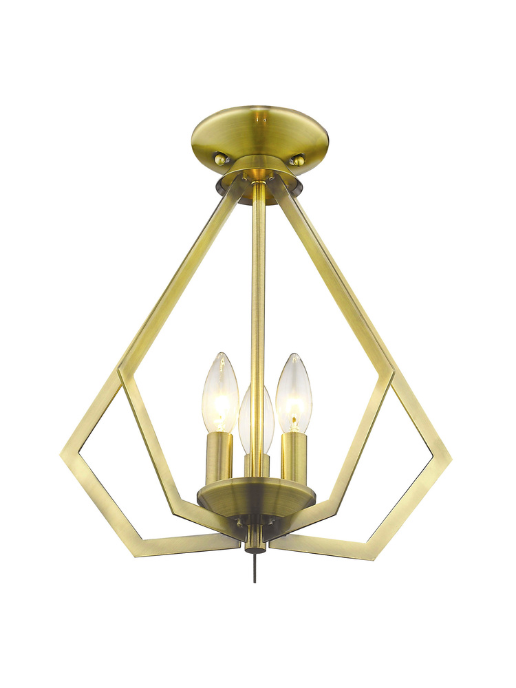 3 Light English Bronze Semi-Flush / Small Pendant with Antique Brass Finish Accents