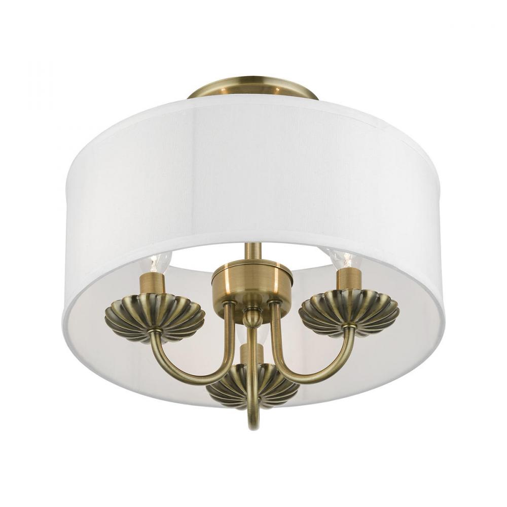 3 Light Antique Brass Semi-Flush Mount