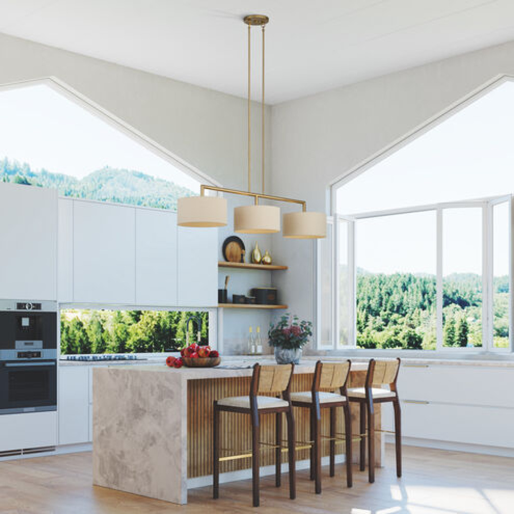 If you love the minimalist, natural aesthetic of mid-century modern design, you’ll adore the organic colors and the phenomenal illumination of the timeless Bellingham lighting collection. Stacked in double- and triple-tiered “wedding cake” style, the handcrafted hardback drum shades are completely finished with a soothing parchment color fabric, radiating warm, earthy ambient lighting. This versatile collection features an array of linear and pendant chandeliers, semi-flush mounts, ADA wall sconces and even a delightful little swing-arm wall lamp.