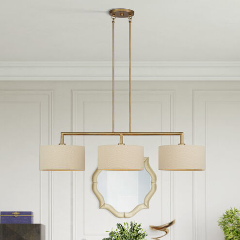 3 Light Antique Gold Leaf Extra Large Linear Chandelier