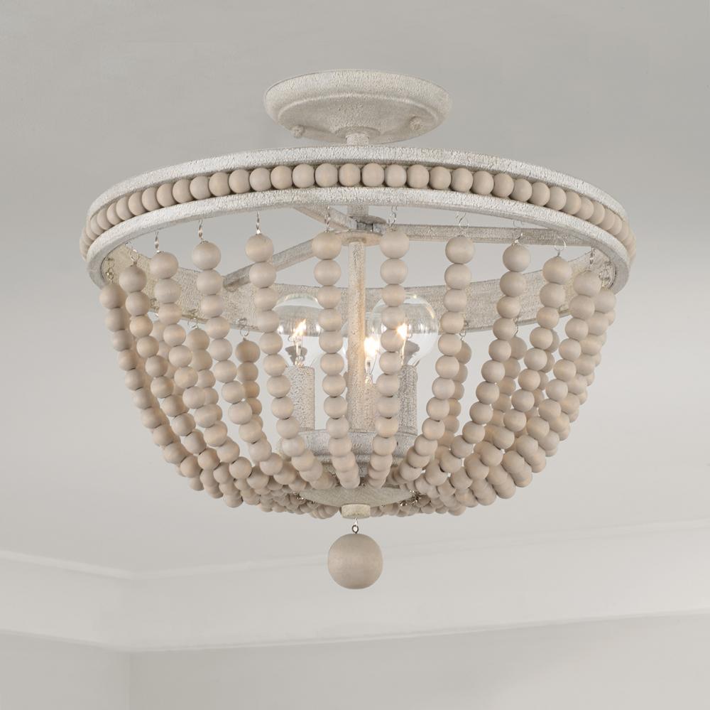 Bring bohemian charm to any space with the hand-painted wood beads of the Handley Semi Flush. The light, neutral tones of the Sand Dollar finish complement a variety of styles, while the sand-like texture creates dimension.