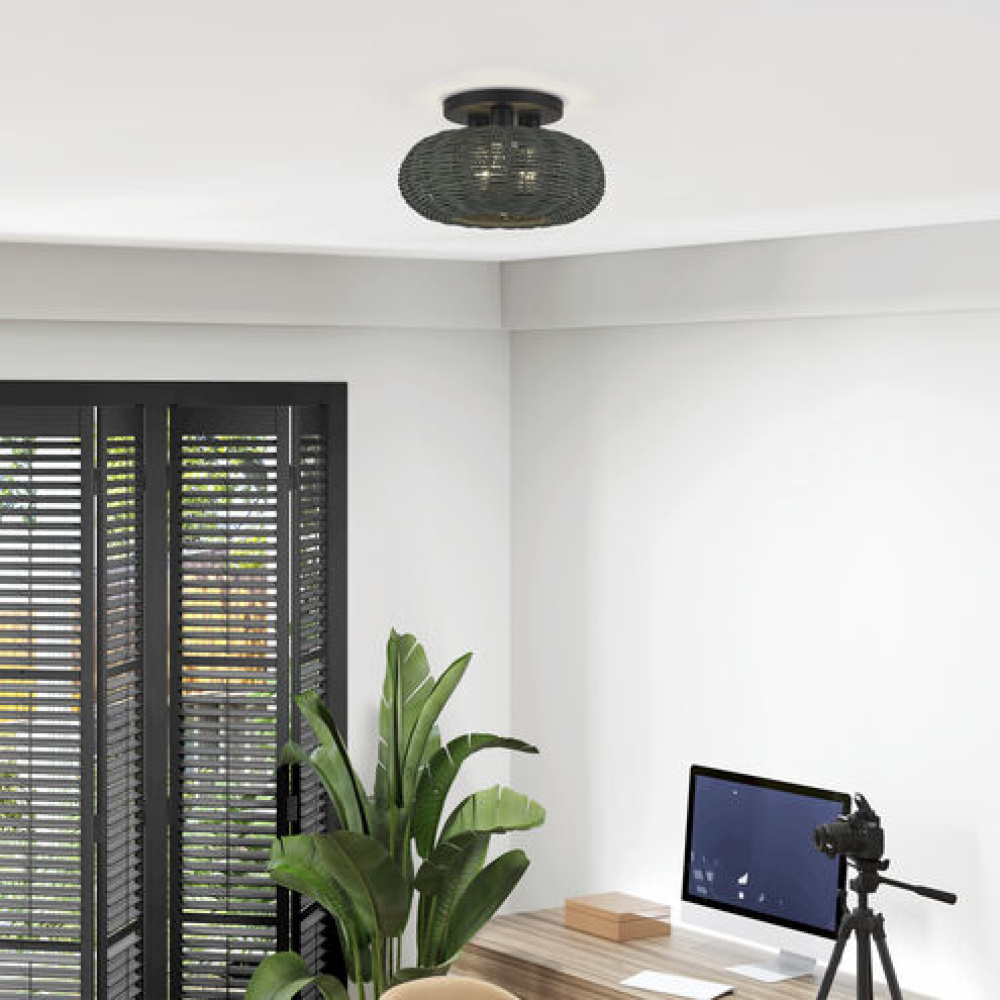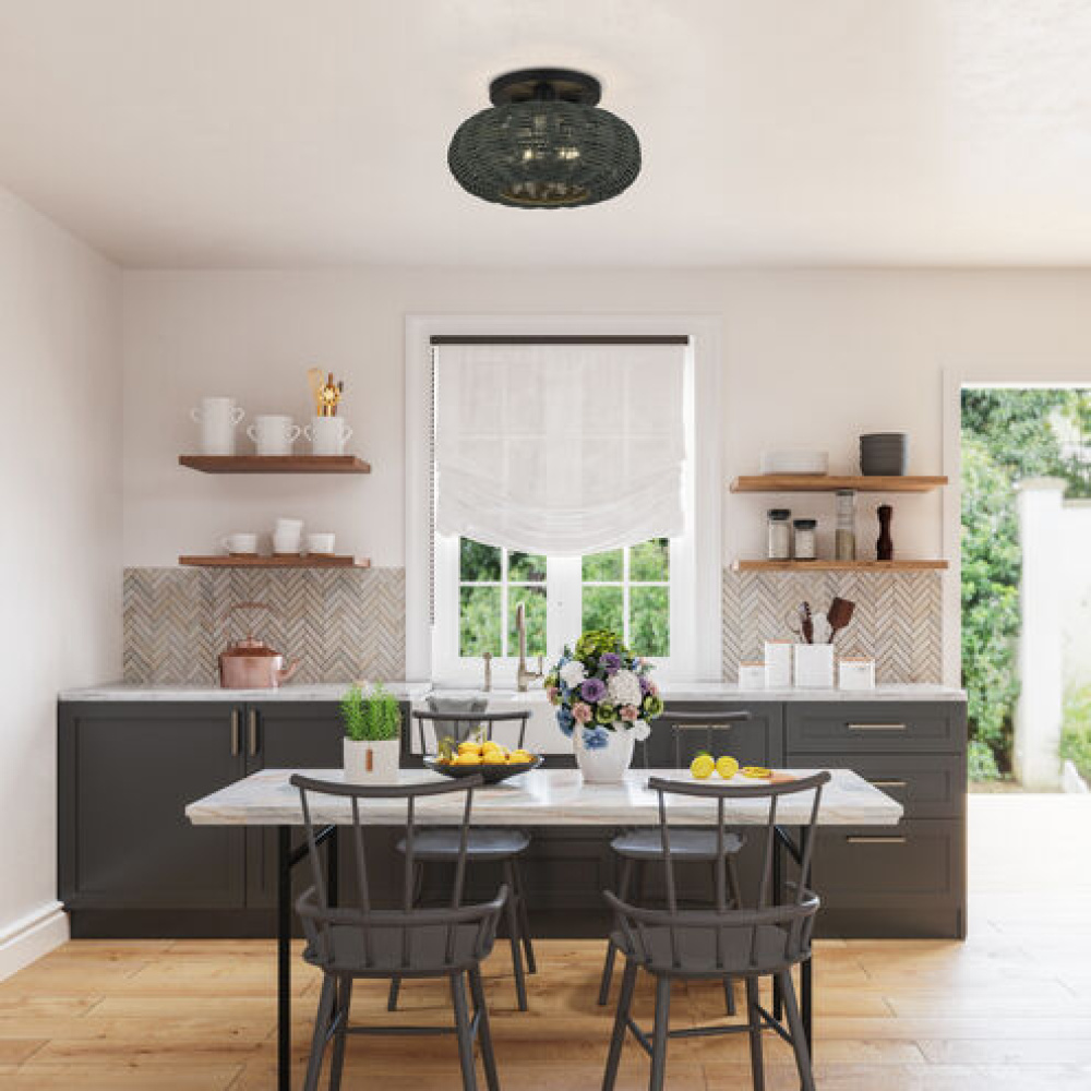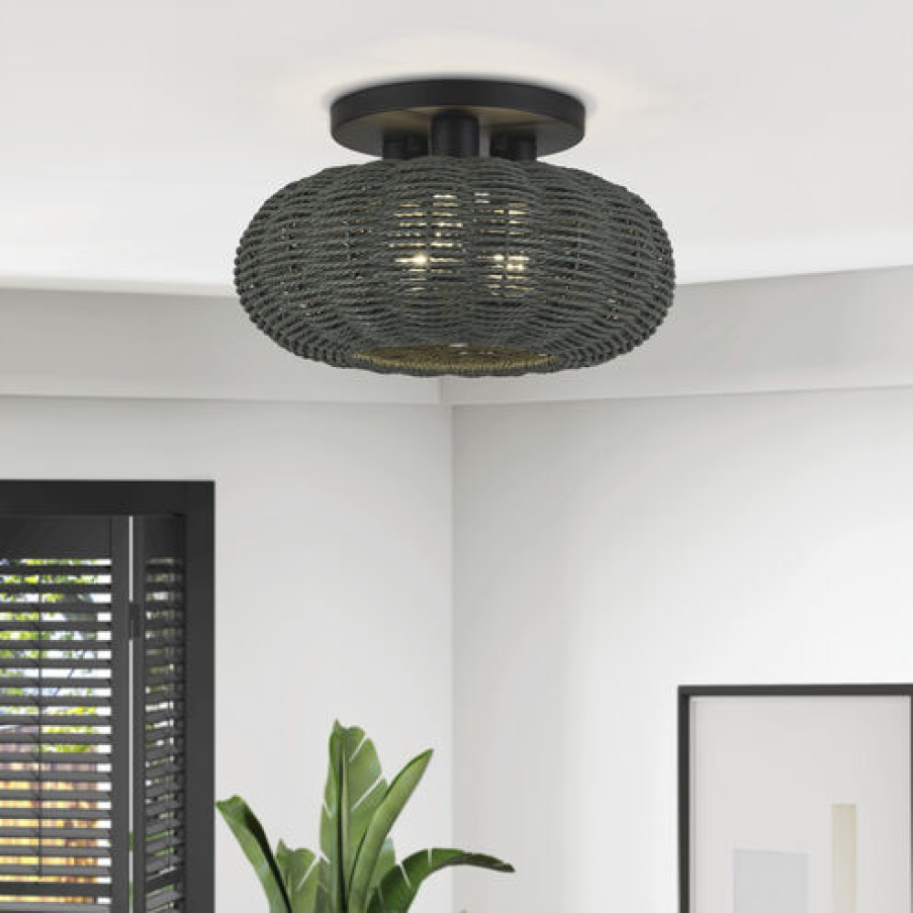 Surrender to one of life’s simplest yet most essential pleasures – soft lighting – with the ambient transitional Deluna lighting collection. This versatile, rustic-inspired design features minimalist metal frames and elegant mandarin-shaped – handwoven with the remarkably durable and water-resistant paper rope material, finished in midnight black. Delivers organic-feeling, gently diffused illumination with atmospheric shadowing.