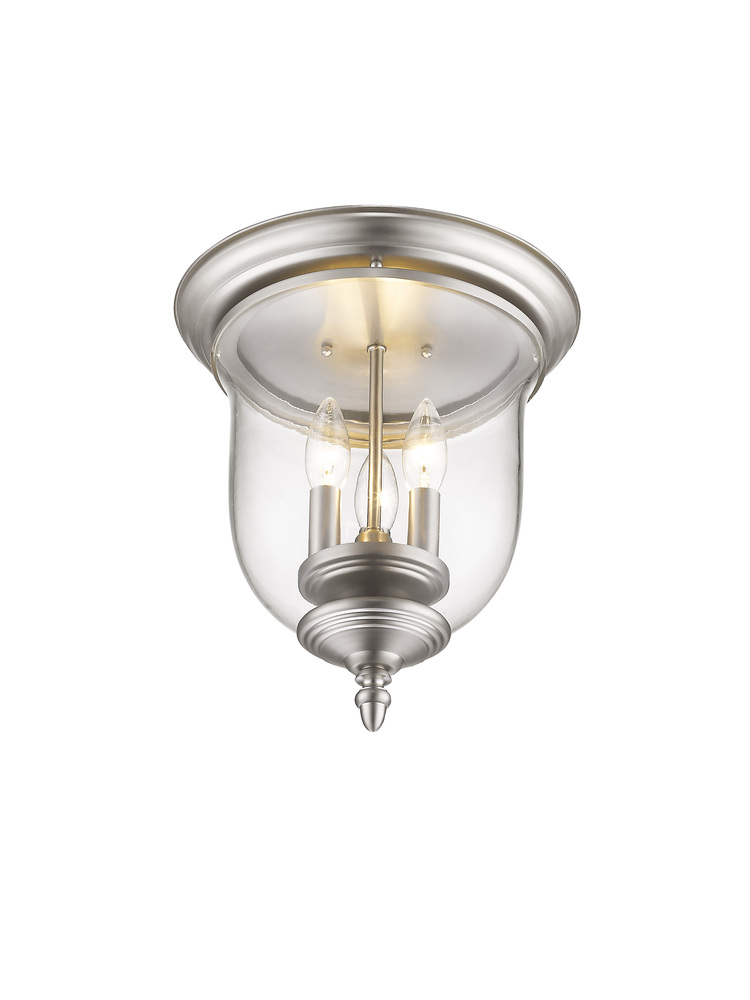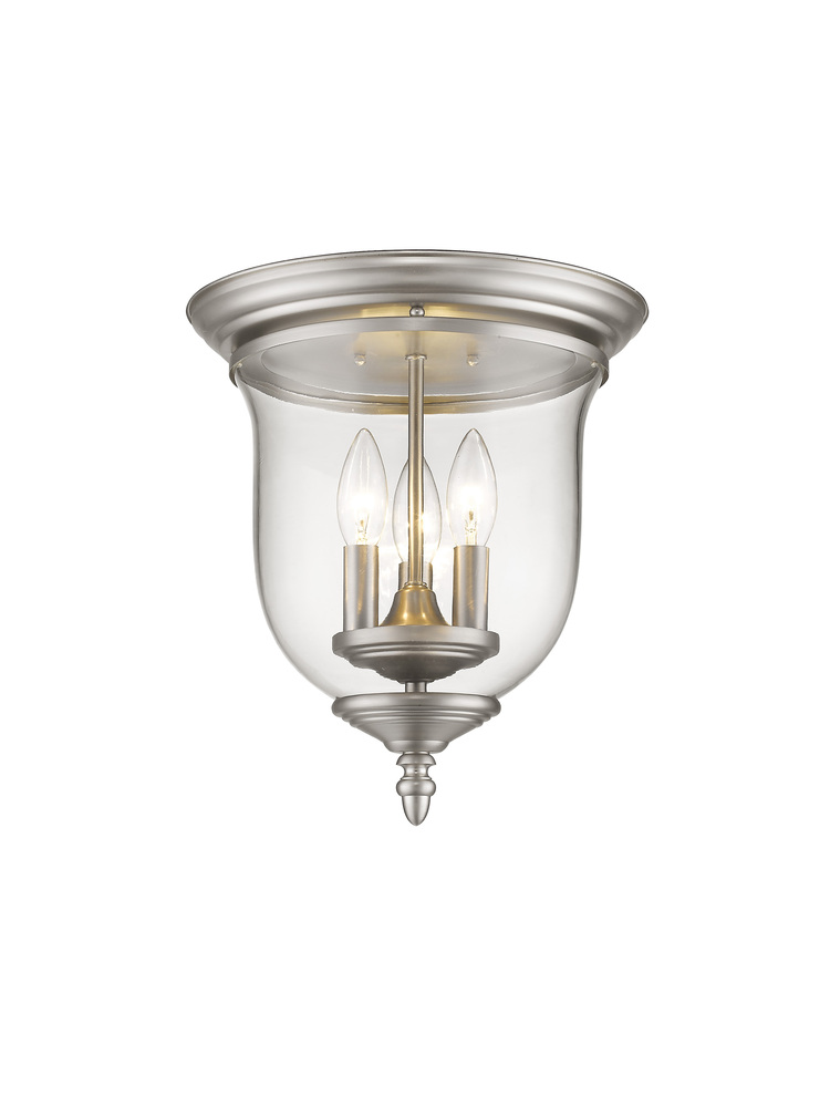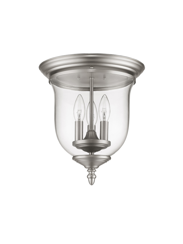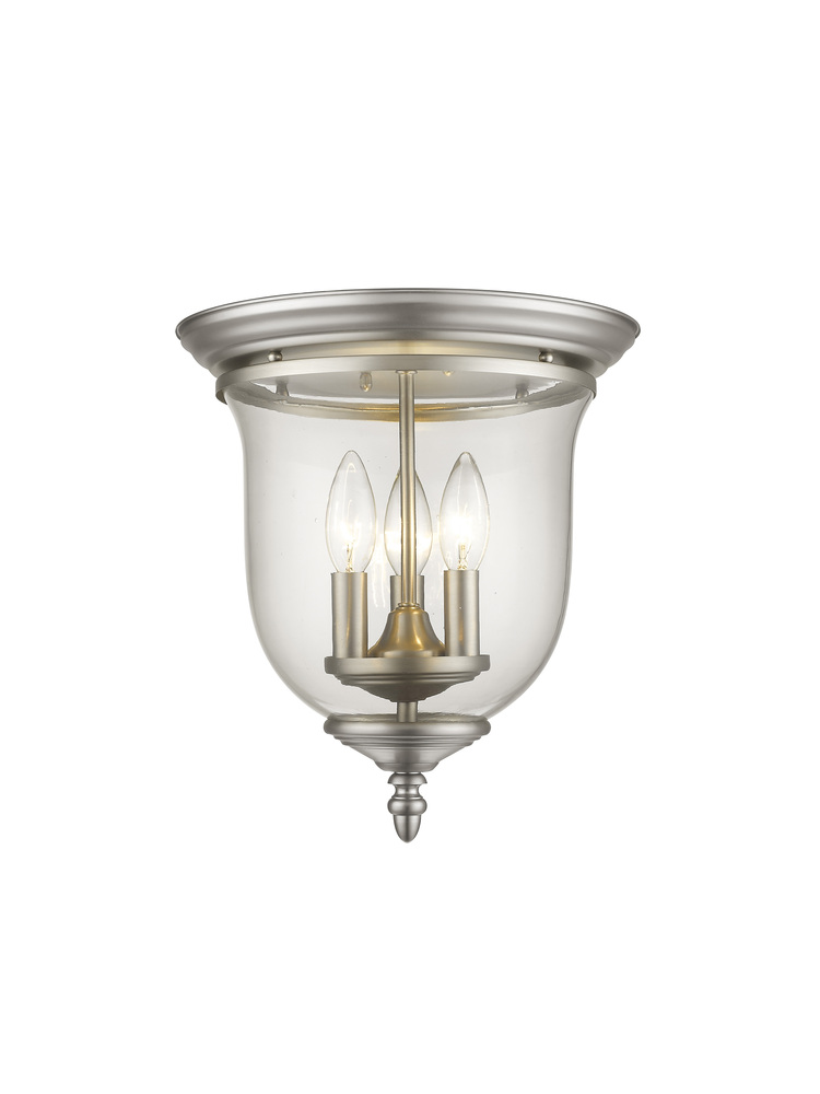 The Legacy Collection Offers A Chic Update To Traditional Style Lighting. This Flushmount Light Design Comes In A Beautiful Brushed Nickel Finish With A Traditional Glass Bell Jar Adding Style.