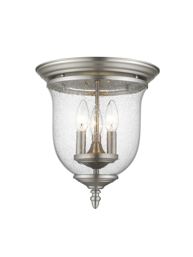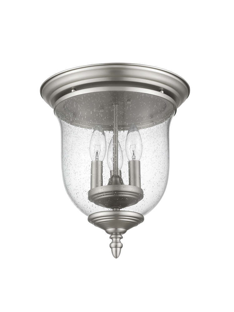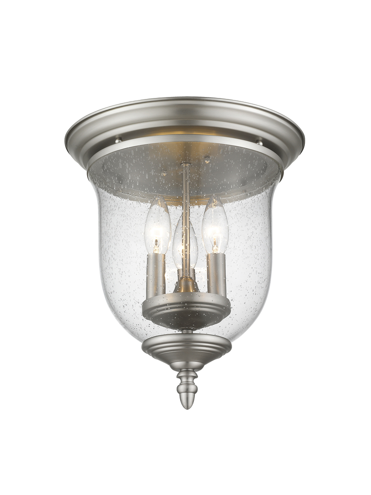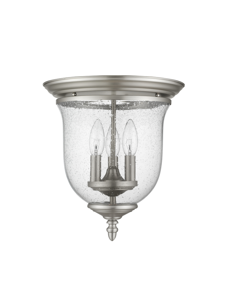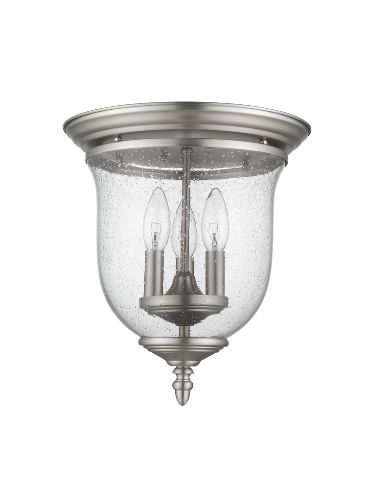 The Legacy Collection Offers A Chic Update To Traditional Style Lighting. This Flushmount Light Design Comes In A Beautiful Brushed Nickel Finish With A Traditional Seeded Glass Bell Jar Adding Style.