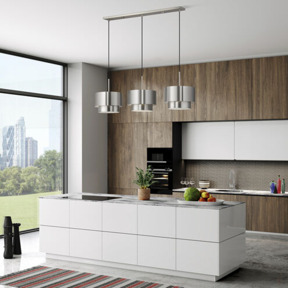 With its clean lines, minimalist aesthetic and sleek geometricity, the chic Zolana lighting collection artfully blends modern function with retro nostalgia. This contemporary two-tiered “wedding cake”-style design features slender, barely-there stems and canopies in warm and cool tones supporting elegant, drum-shaped, solid-metal shades lined with light-amplifying colors on the inside – for soft, glare-free indirect and ambient illumination.