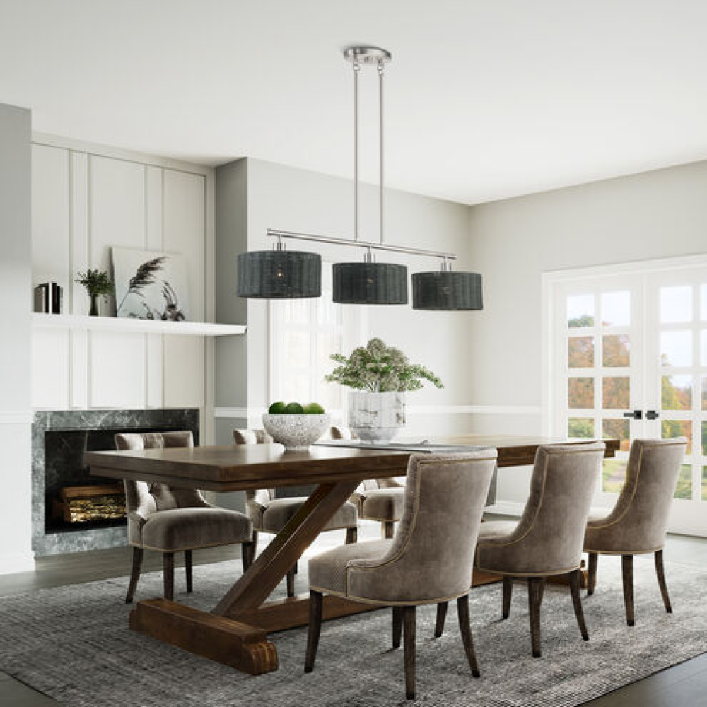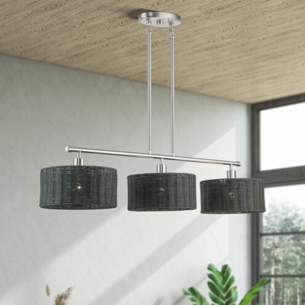3 Light Brushed Nickel Extra Large Linear Chandelier
