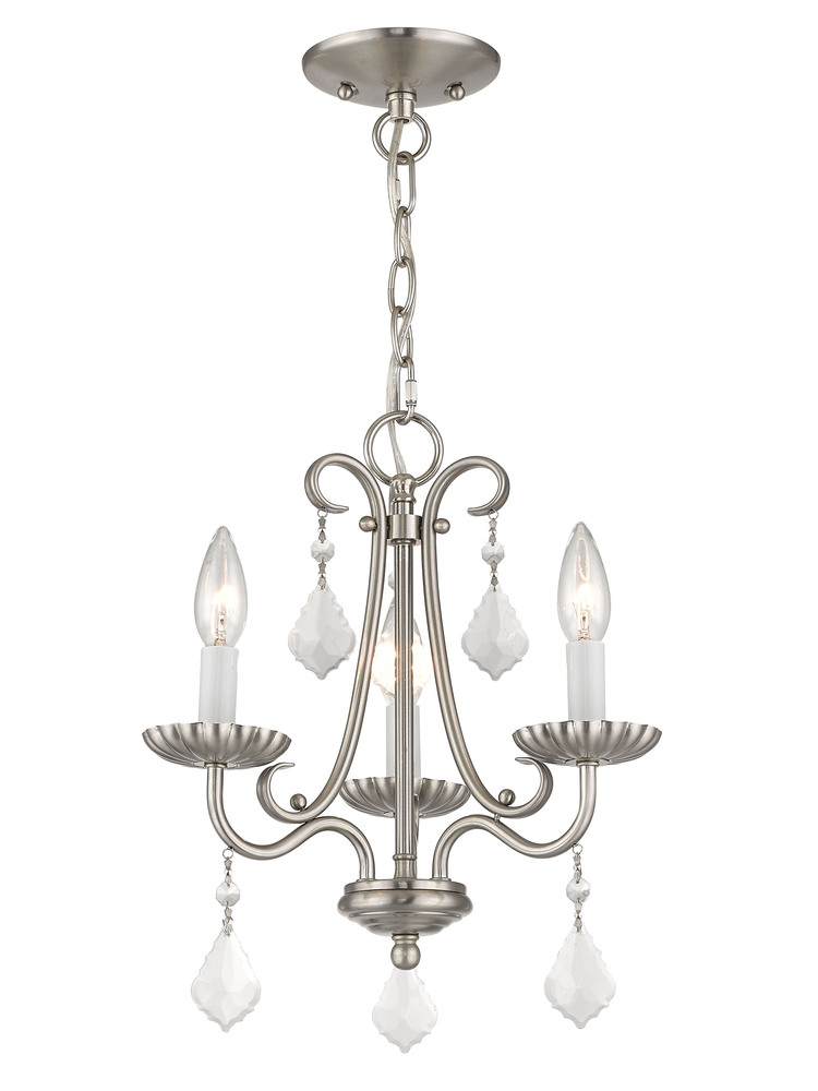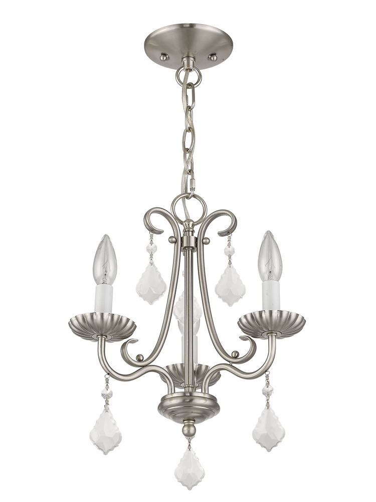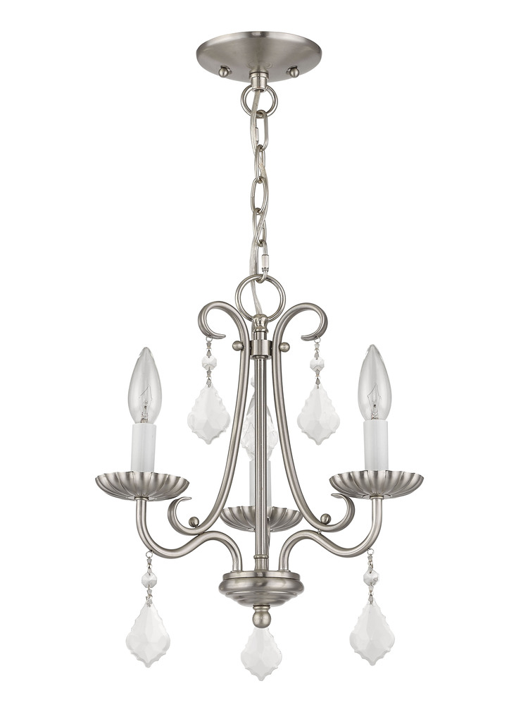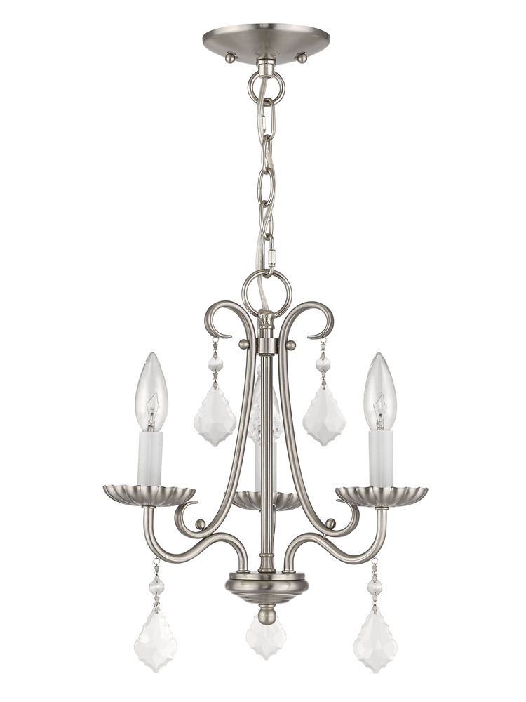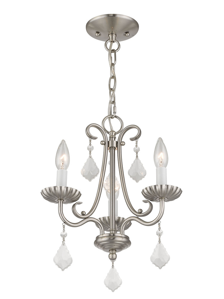 3 Light Black Mini Chandelier with Antique Brass Finish Accents and Clear Crystals