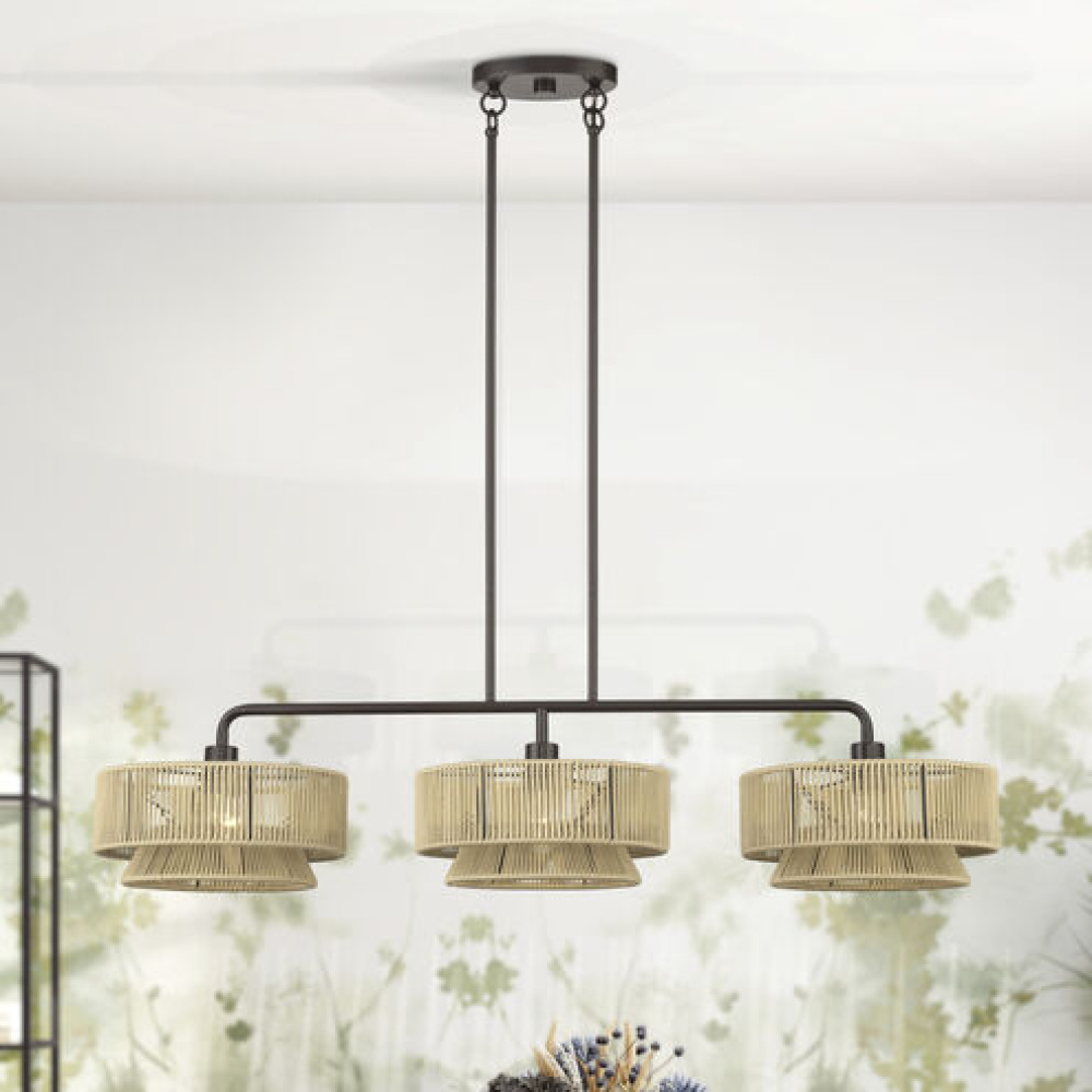 3 Light English Bronze Extra Large Linear Chandelier
