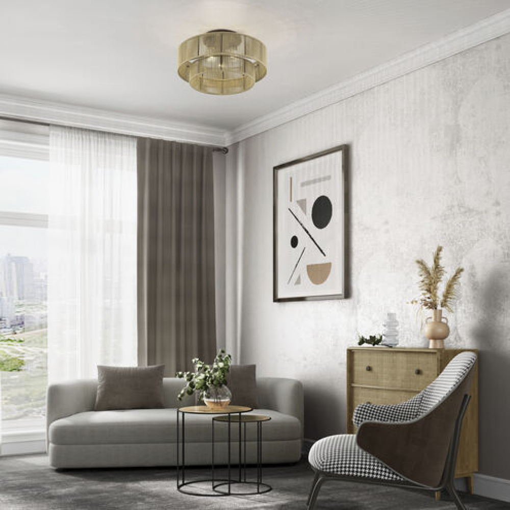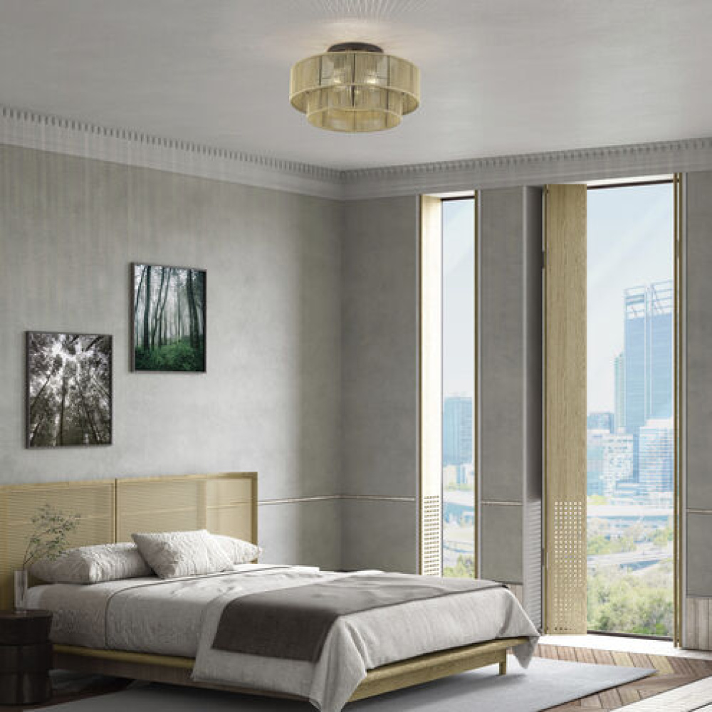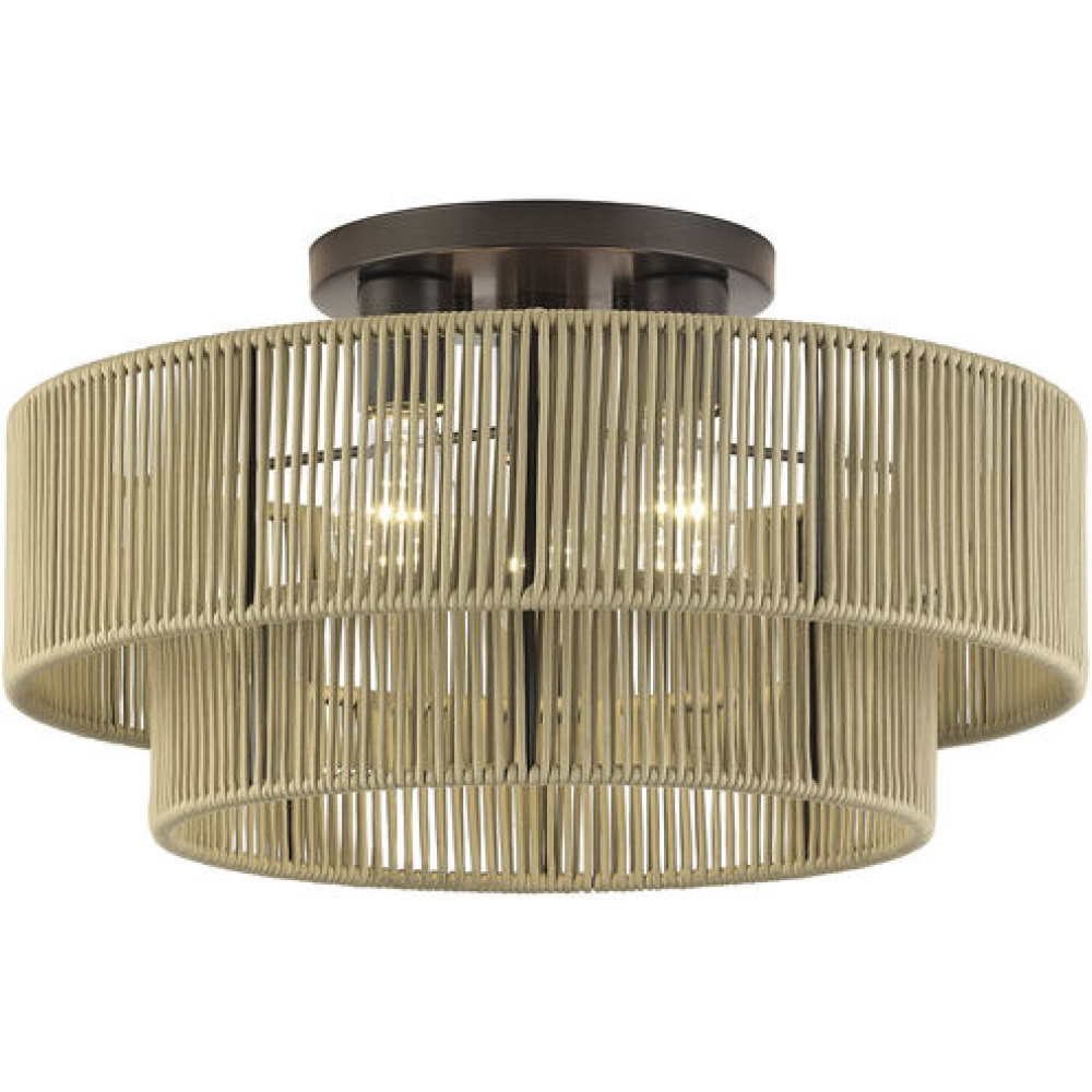 What a joy to come home to the calming, balanced and stylish Acordia lighting collection, with its semi-transparent texture and dynamic illumination! This midcentury modern lineup of elegant ceiling and wall lights features minimal metal frames with dimensional drum-shaped, tiered shades – masterfully handwoven with silky-smooth, highly-durable polyester rope, finished in noble, natural and atmospheric colors.