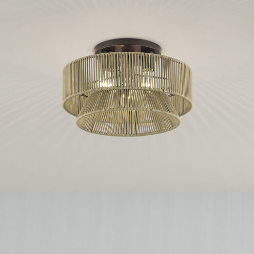 Laidback yet disciplined, the midcentury modern Florell lighting collection celebrates all versions of You: from “beach-haired weekender” to “visionary CEO”. with a vast selection in dramatic colors, this boho-inspired design features minimalist metal frames supporting drum-shaped, tapered and tiered shades – beautifully hand-threaded with sleek (fade- and fray-resistant) polyester rope. Semi-transparent texture allows for creating nuanced shadowing effects.