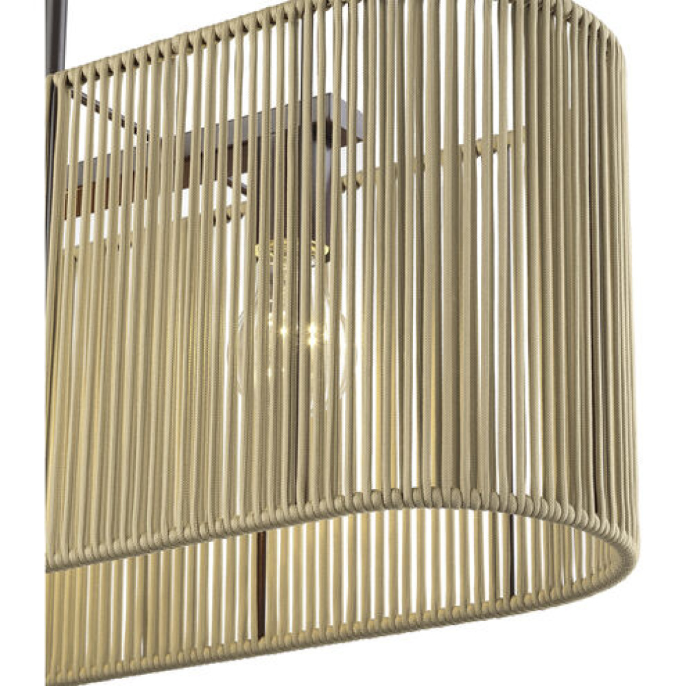 Poised yet fun, the versatile Goldiemesh lighting collection brings elegance, dimensionality and rich, golden radiance to midcentury modern interiors. This boho-inspired design features minimalist metal frames (in contemporary metallic finishes) supporting thin, wide drum shades artfully hand-strung with polyester rope silky-smooth, durable, fade- and fray-resistant synthetic fiber, available in brightening and atmospheric colors.