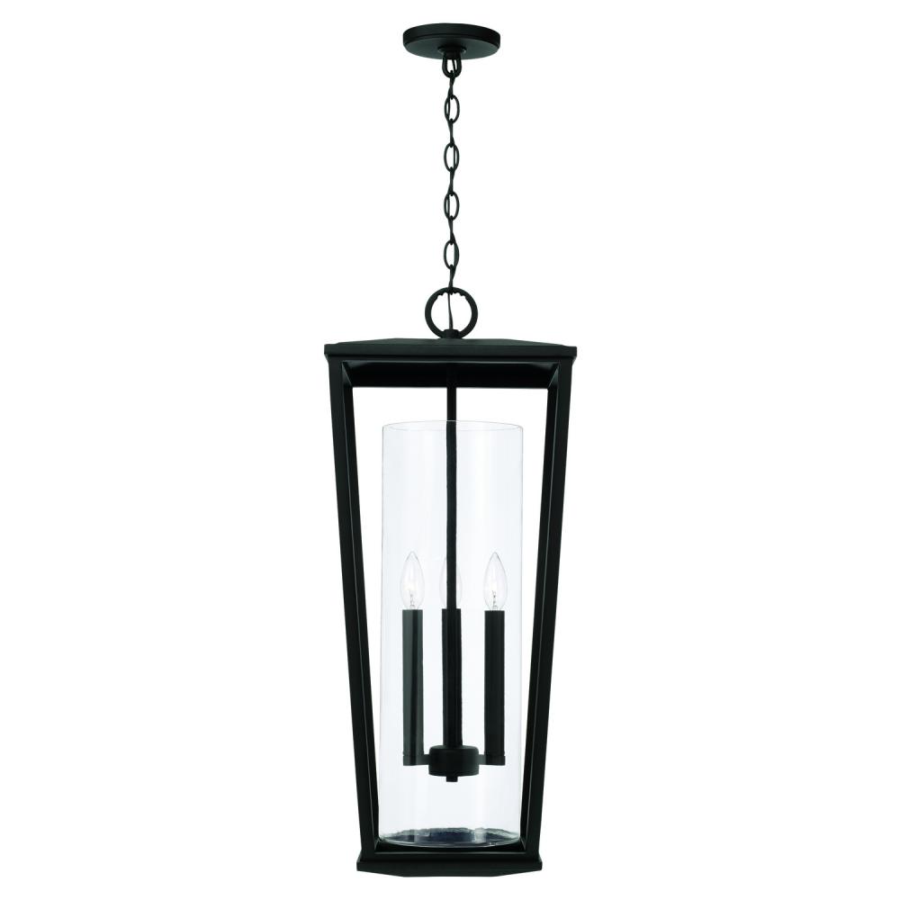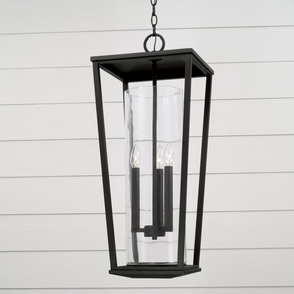12.25"W x 30"H 3-Light Outdoor Hanging Lantern in Black with Clear Glass Cylinder