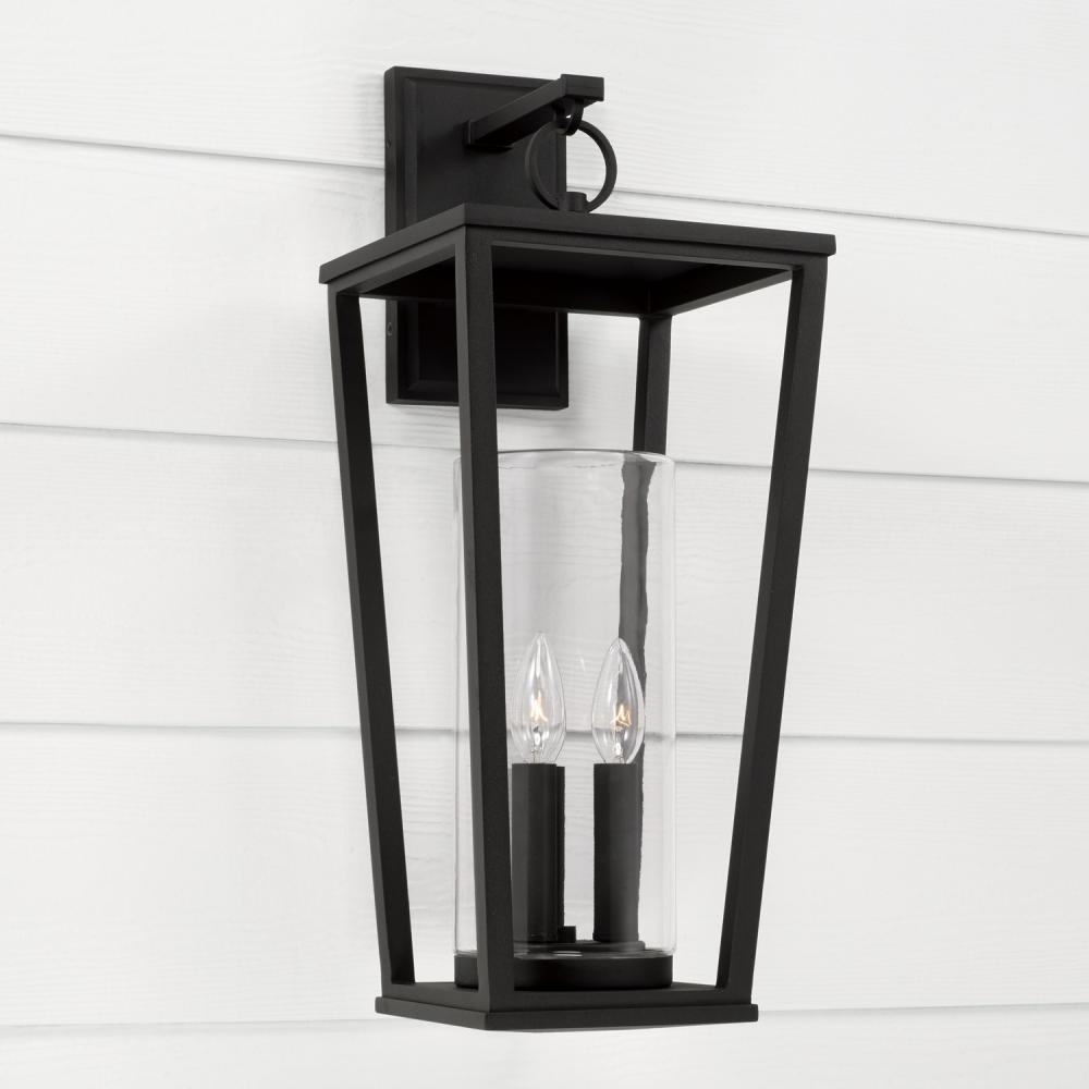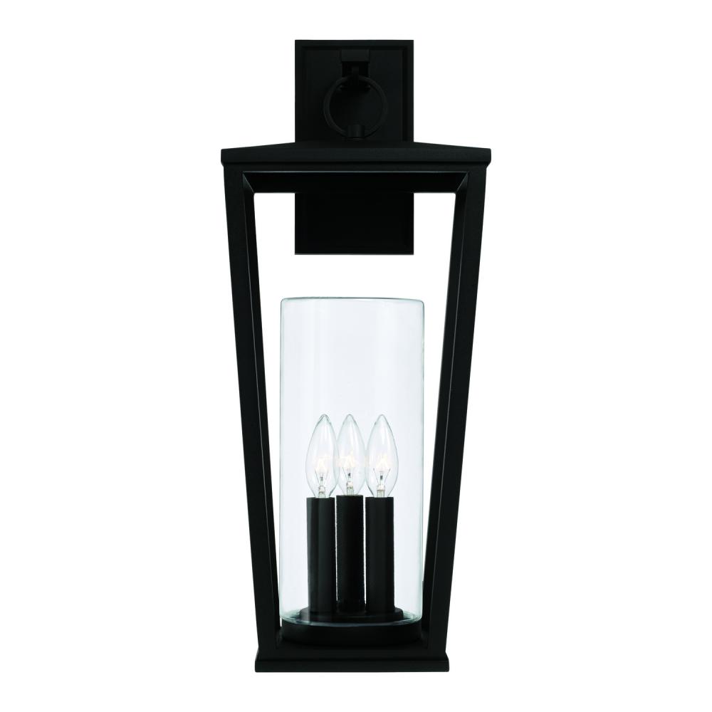 9.25"W x 23.75"H 3-Light Outdoor Wall Lantern in Black with Clear Glass Cylinder