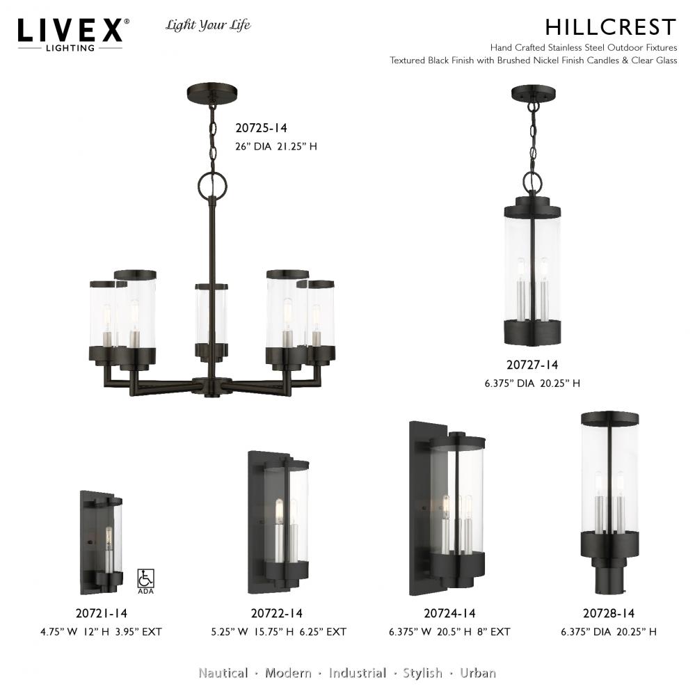 1 Lt Textured Black Outdoor ADA Wall Lantern