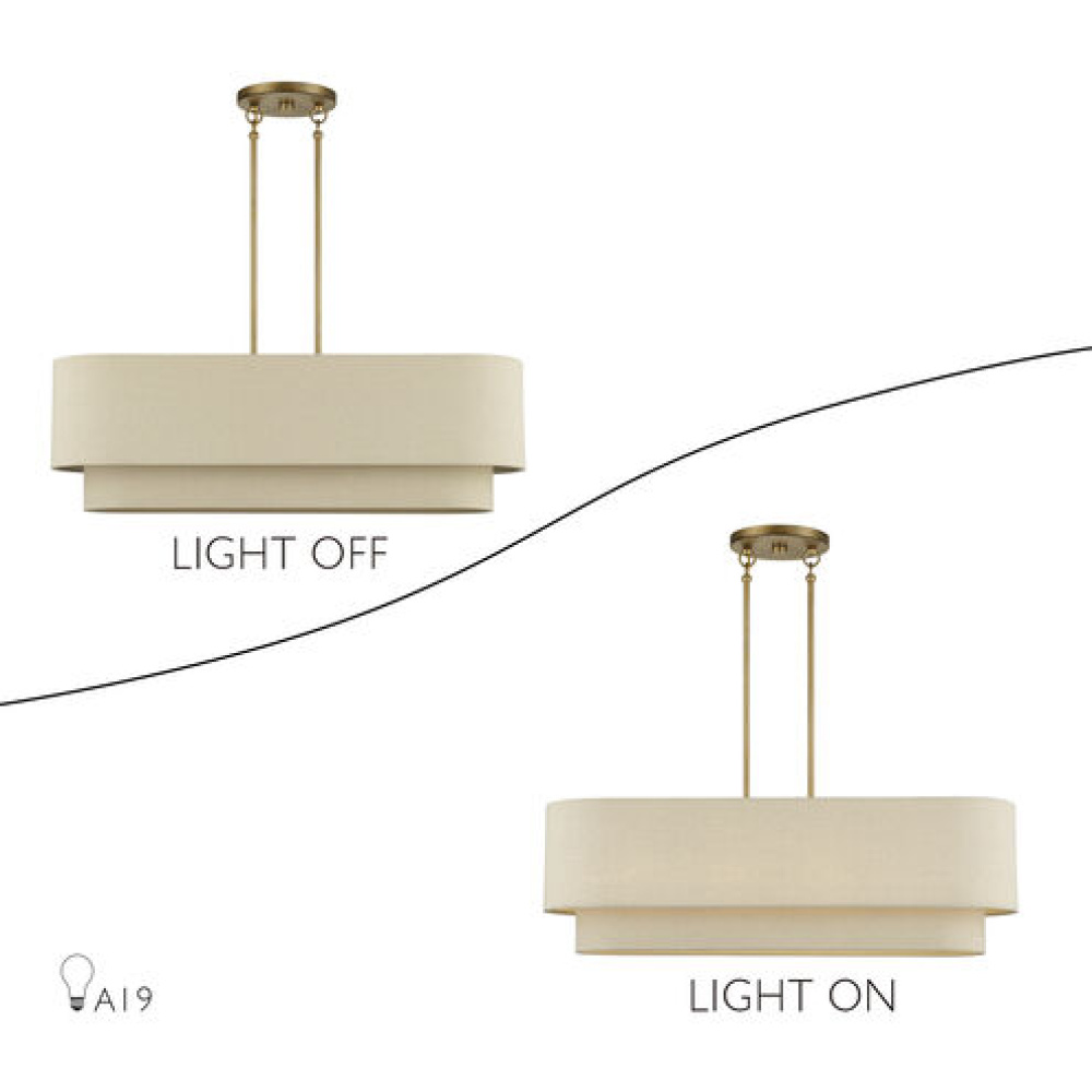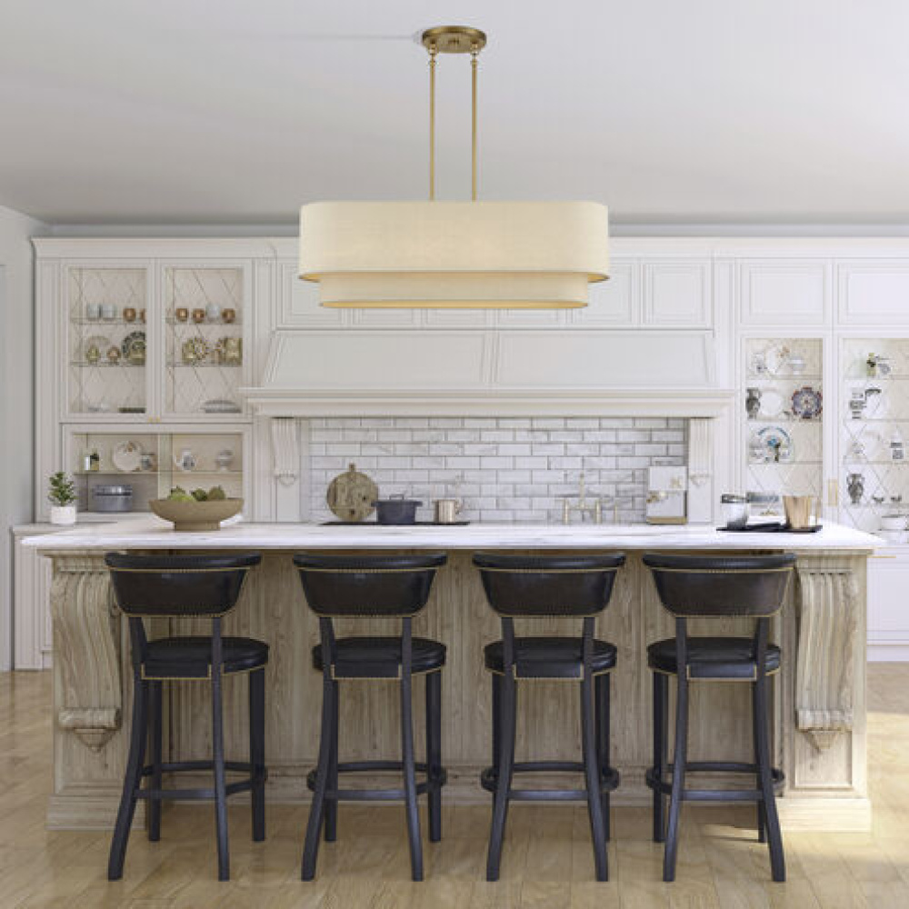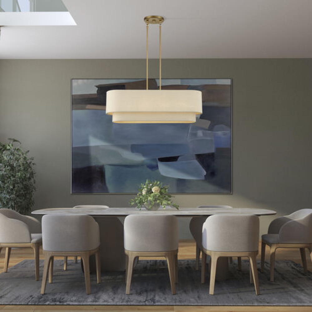 If you love the minimalist, natural aesthetic of mid-century modern design, you’ll adore the organic colors and the phenomenal illumination of the timeless Bellingham lighting collection. Stacked in double- and triple-tiered “wedding cake” style, the handcrafted hardback drum shades are completely finished with a soothing parchment color fabric, radiating warm, earthy ambient lighting. This versatile collection features an array of linear and pendant chandeliers, semi-flush mounts, ADA wall sconces and even a delightful little swing-arm wall lamp.