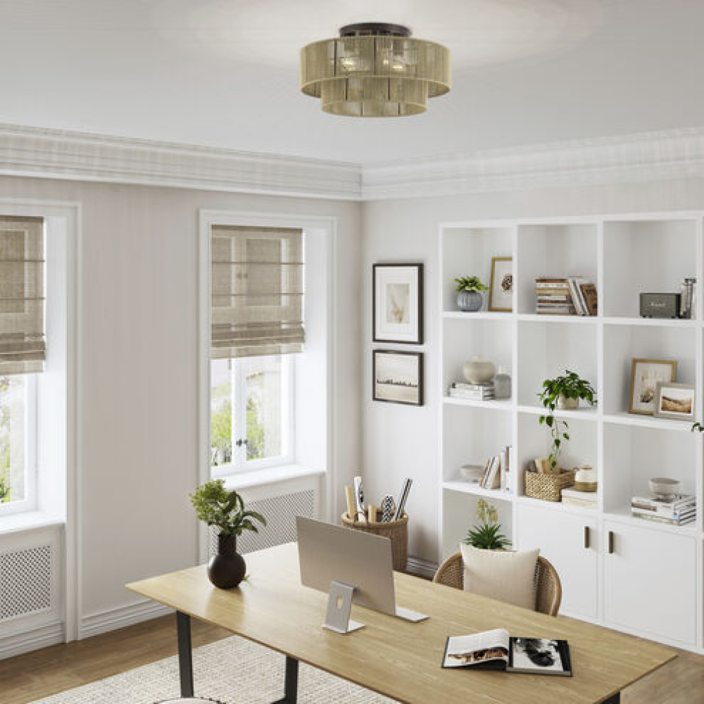 What a joy to come home to the calming, balanced and stylish Acordia lighting collection, with its semi-transparent texture and dynamic illumination! This midcentury modern lineup of elegant ceiling and wall lights features minimal metal frames with dimensional drum-shaped, tiered shades – masterfully handwoven with silky-smooth, highly-durable polyester rope, finished in noble, natural and atmospheric colors.