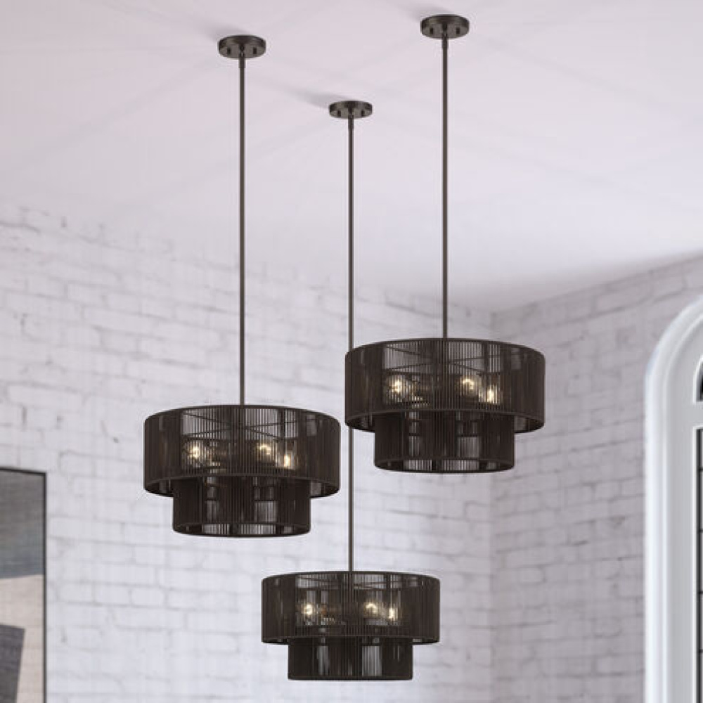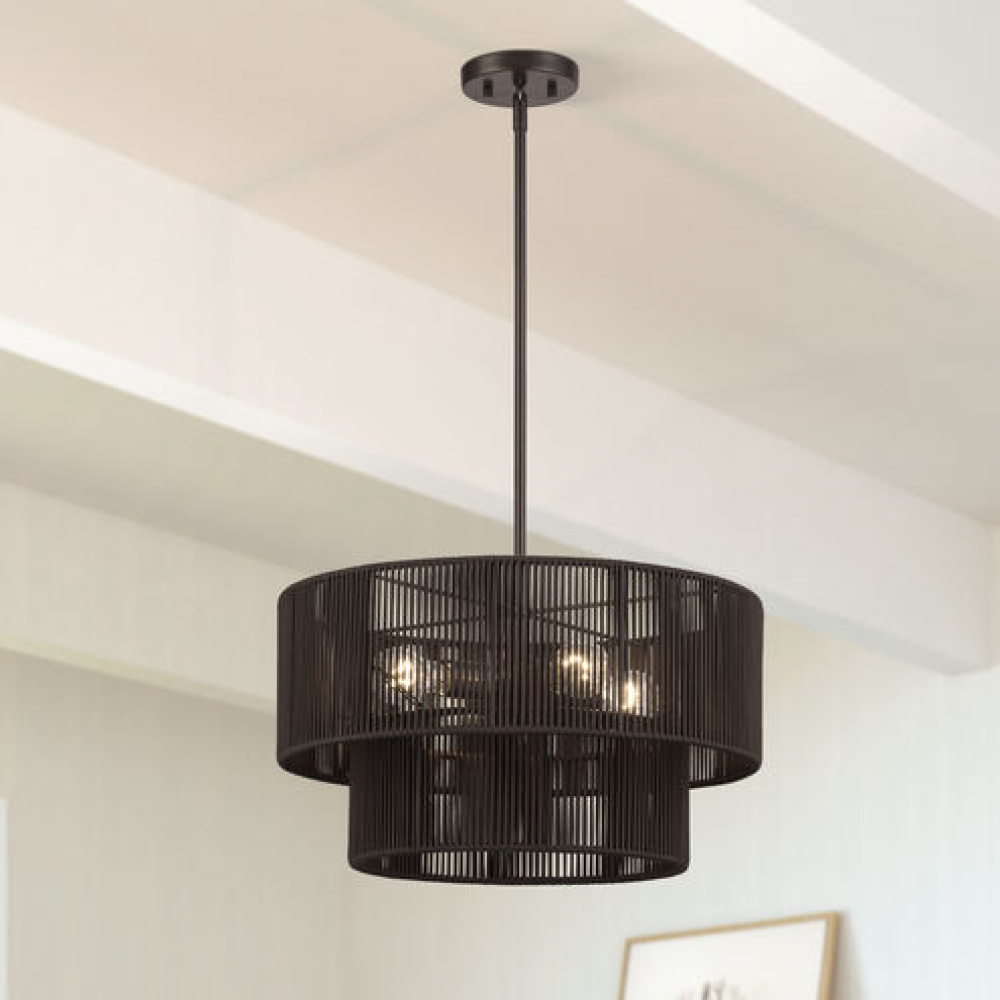 What a joy to come home to the calming, balanced and stylish Acordia lighting collection, with its semi-transparent texture and dynamic illumination! This midcentury modern lineup of elegant ceiling and wall lights features minimal metal frames with dimensional drum-shaped, tiered shades – masterfully handwoven with silky-smooth, highly-durable polyester rope, finished in noble, natural and atmospheric colors.