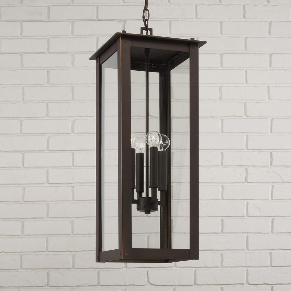 Clean and contemporary, the Hunt Hanging Lantern takes a modern approach to traditional style. The Oiled Bronze finish accents the striking frame and makes a statement in any outdoor space. Part of our Rain or Shine Collection and backed by our five-year warranty against rusting and fading.