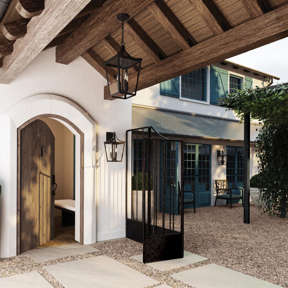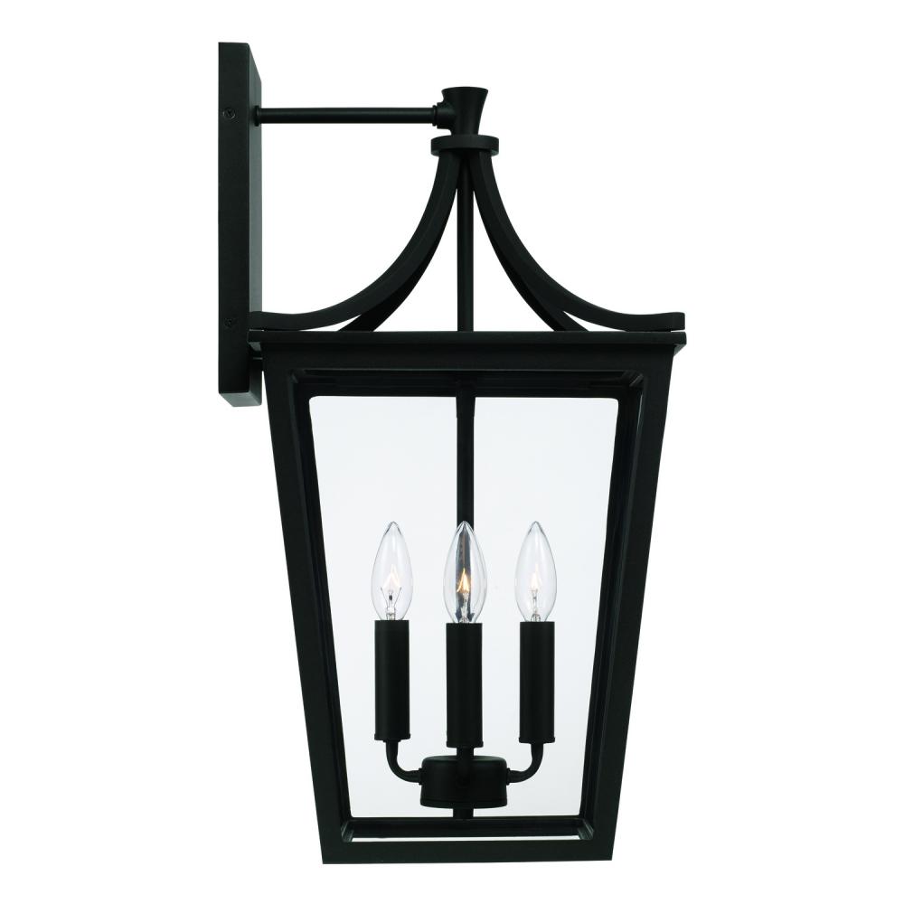 12"W x 23.25"H 4-Light Outdoor Wall Lantern in Black with Clear Glass